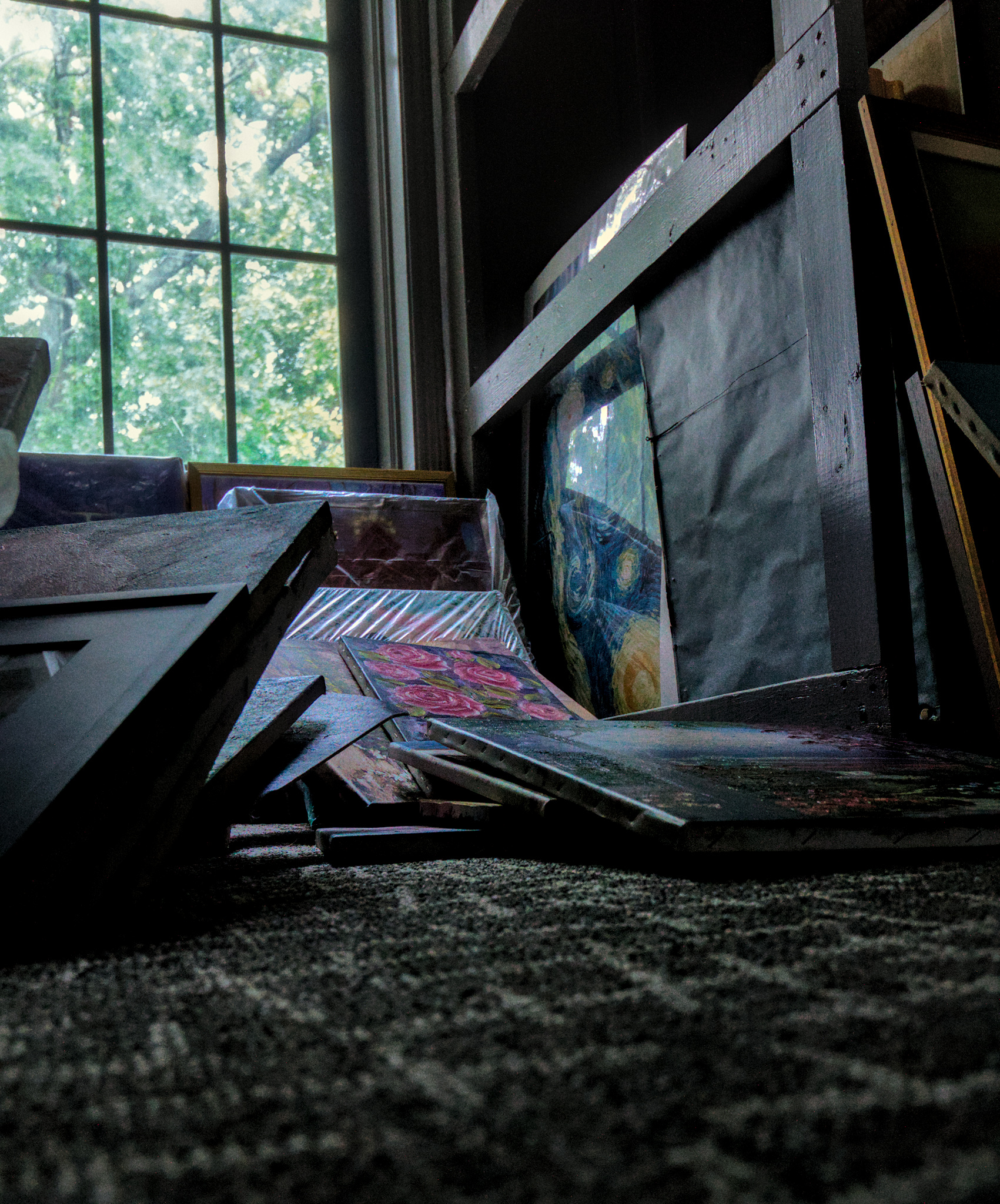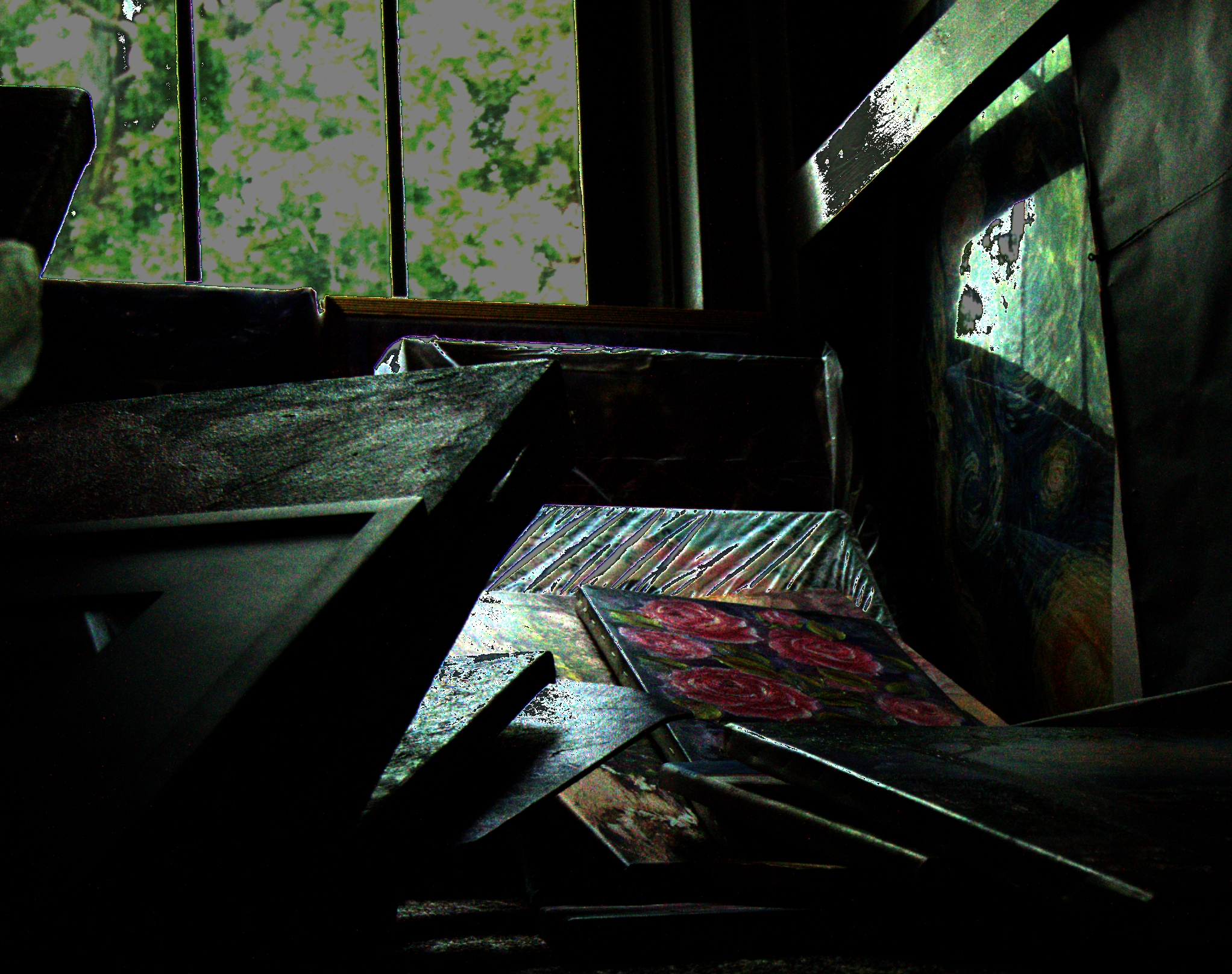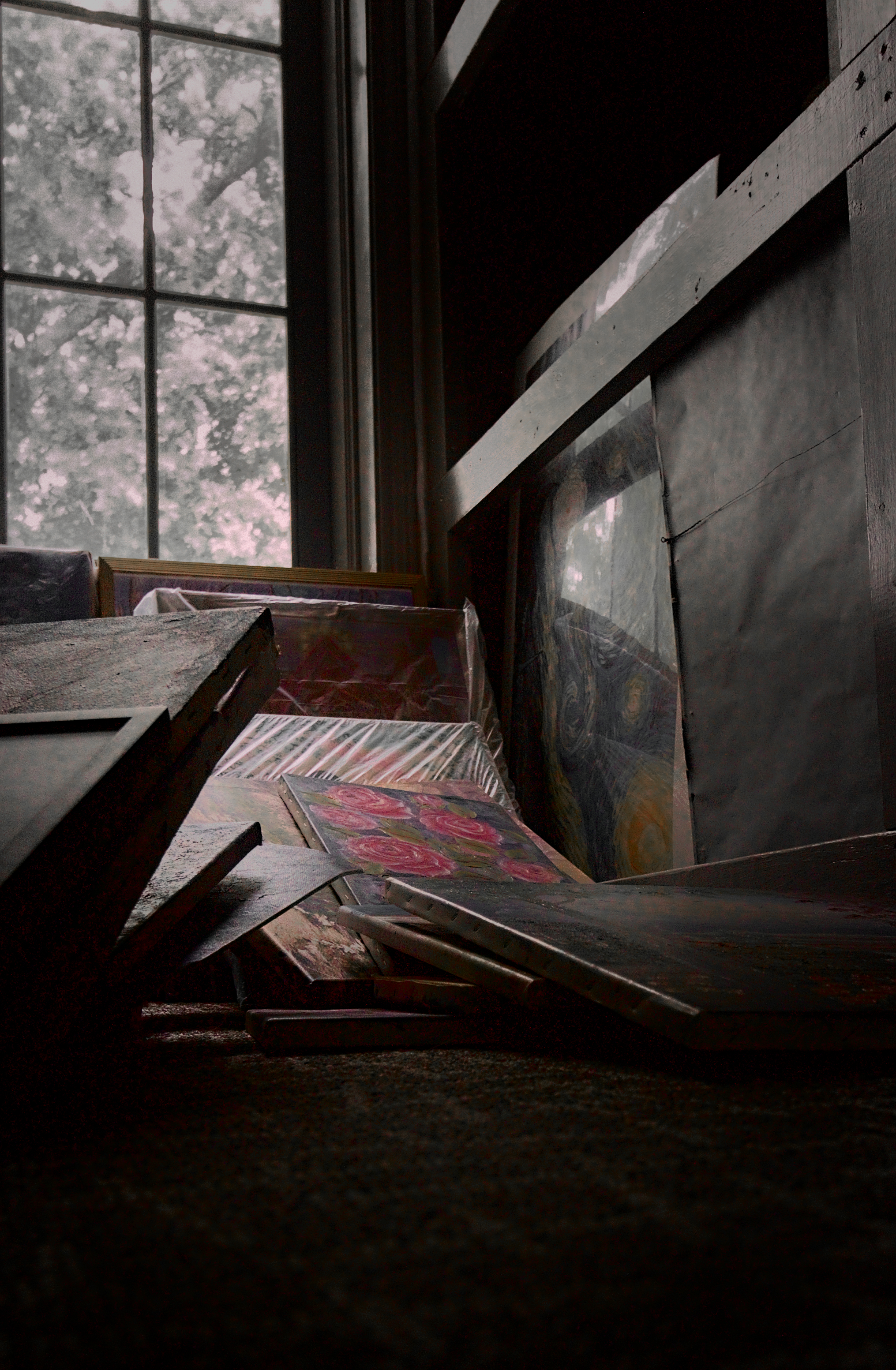 Could use some help with this photo. Shot in the attic of an art museum, I’ve worked a bit to get the focus on the painting of the flowers. still a bit of a work in progress. However, the sun was so bright coming in that I had a lot of whites blown out so I used a bit of filmic to tame what’s seen in the windows. I want to print this on 11x14 but I’m afraid of how bad those window panes with the trees will come out. Any ideas?