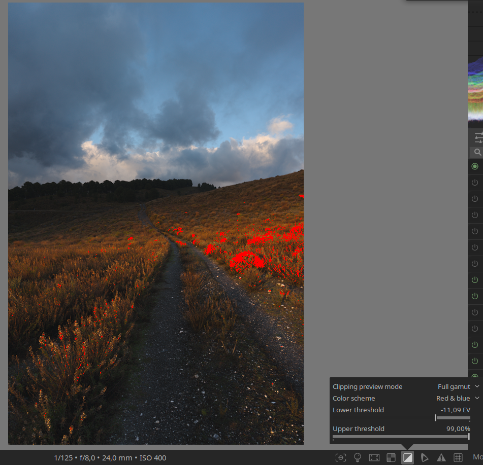 I’m not sure I have the right settings for clipping warnings, especially for colour.