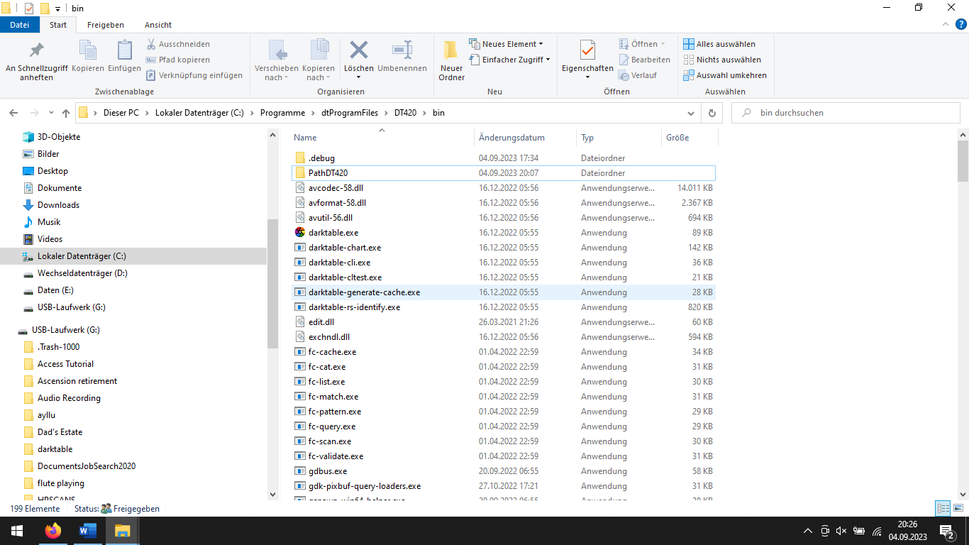 On the properties for the shortcut named darktable I have a target of C.\dtProgramFiles\DT420\bin.