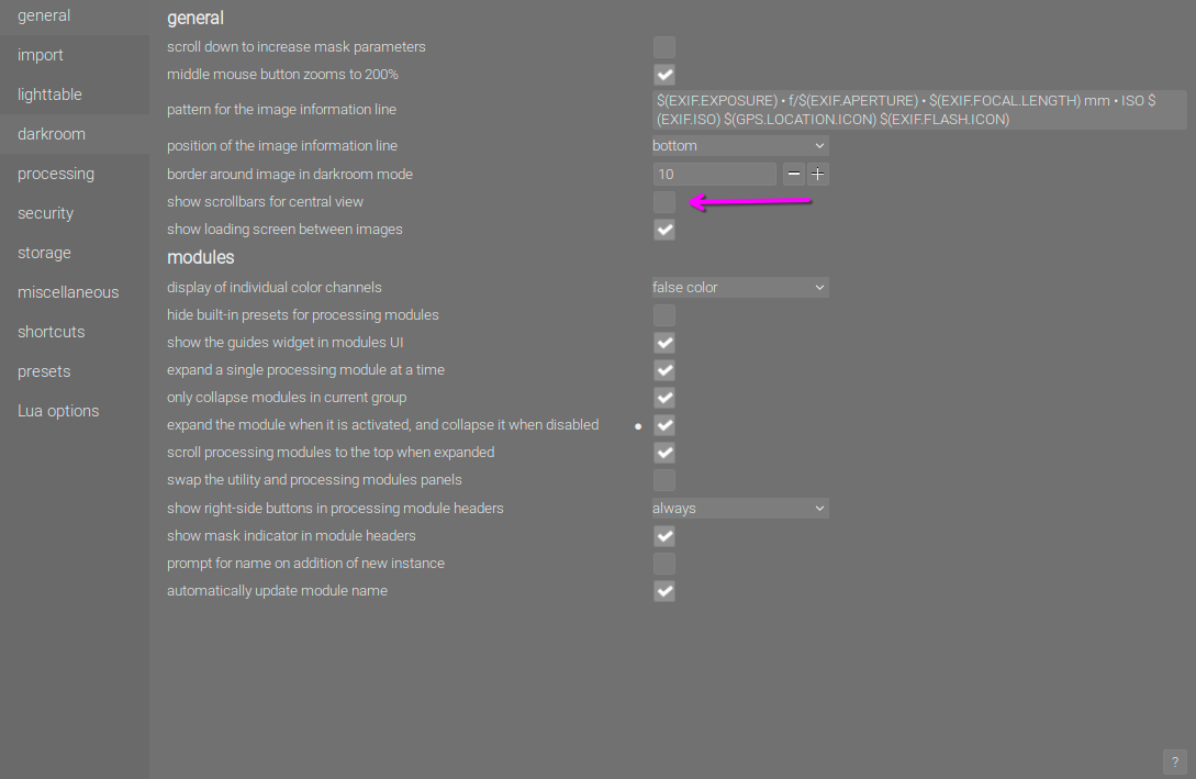 In fact, the user has the option to granularly disable those in the central view in the lighttable: