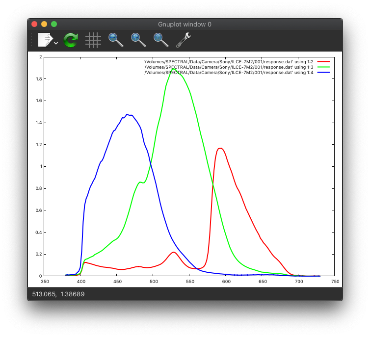 For comparison, I have a dataset from the ACES rawtoaces repo, sony_ilce-7rm2_380_780_5.json, which I think is the same camera as the one you posted above. Here’s its plot: