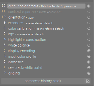 This is a basic set…I have agx but it would likely be sigmoid or filmic and also see I have an auto applied module in the inactive state…that should not normally be there…I just put one in for demo…