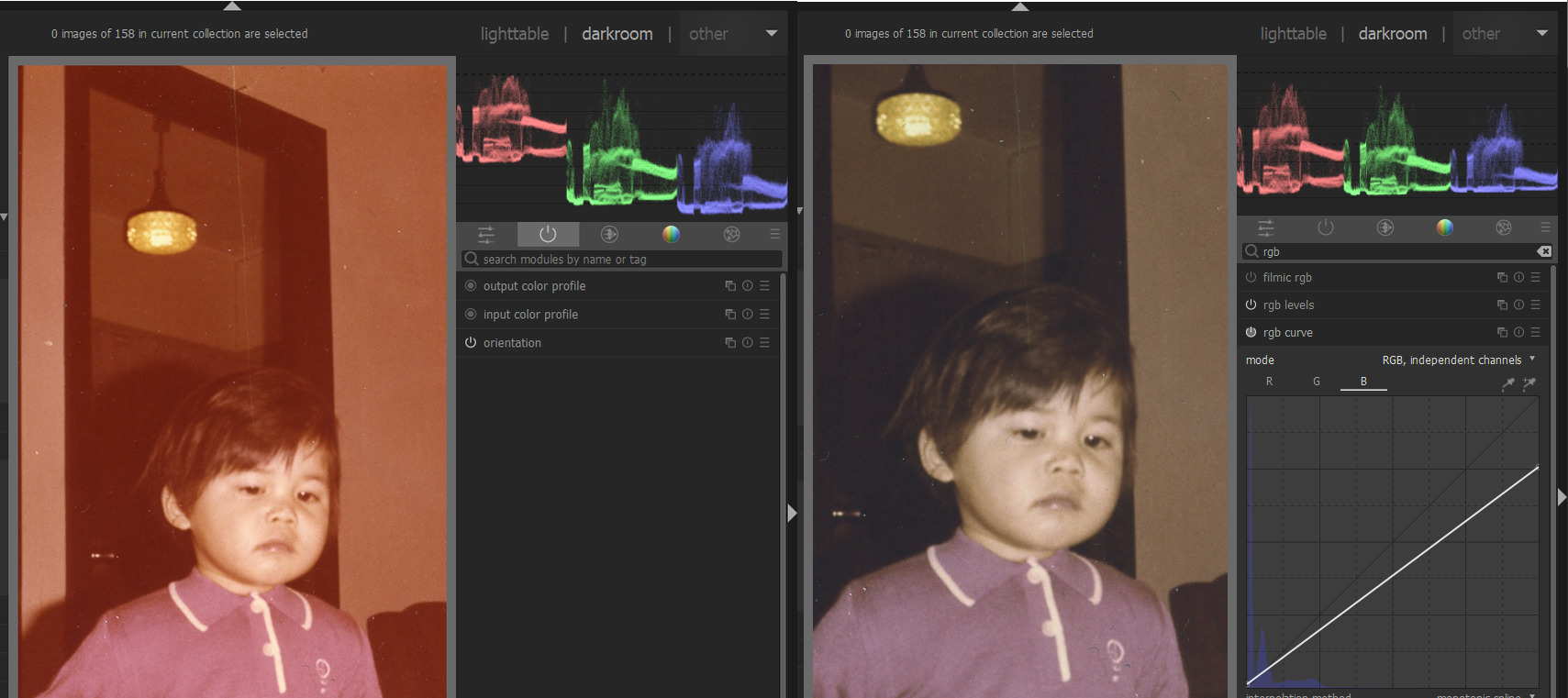 With old photo colors deteriorate with different speed. Blue gets typically lost first. So I think one way is to get the individual color channels sort of on a similar level.