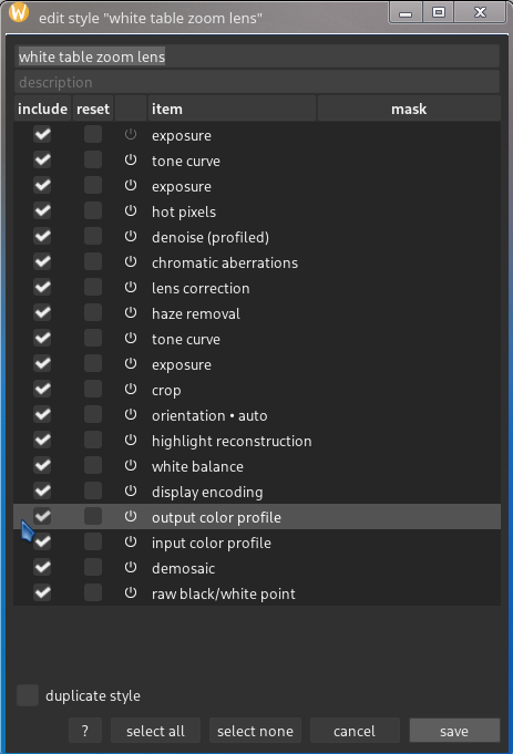 Another problem I would like to ask for a solution for is, that when I crop digitally in while shooting in camera, the camera remembers the cropped area but still saves the full image. Photoshop showed this via a border I could easily crop to or having a setting of either “as shot” or “original”, where as shot would keep the aspect ratio I wanted to shot at and any potential zooms, but I couldn’t find a way inside Darktable to commit to that crop. Doing that with a style would also be great.