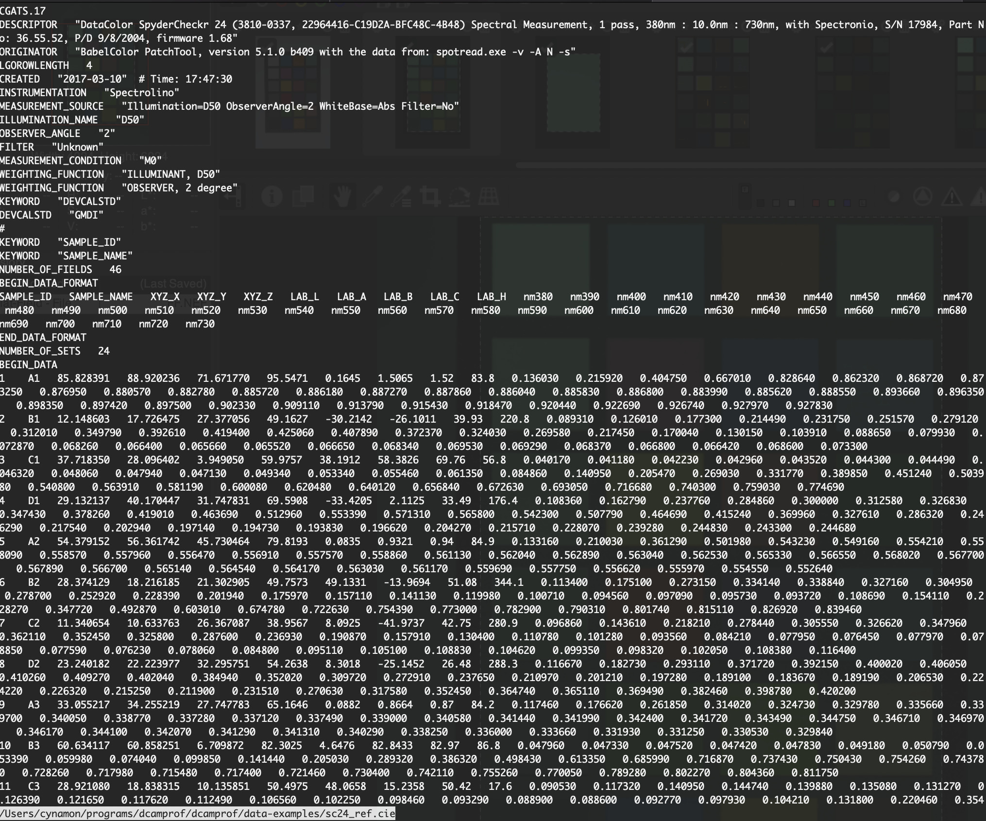 Where Nikon_D750_dcamprof.json is the spectral file in dcamprof format, which contains this: