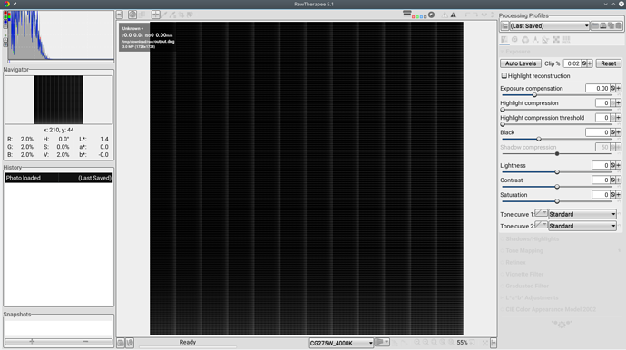 Your histogram looks different/incorrect. Apply the â(Neutral)â profile - does it look correct now?