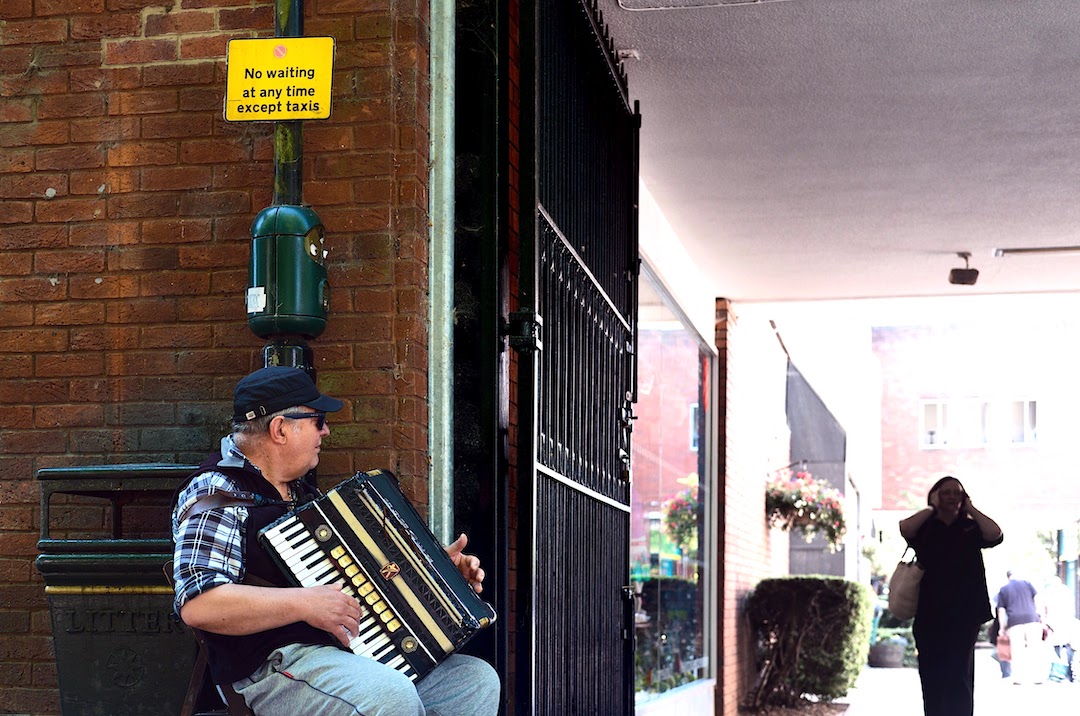 A 2017 example of where ETTR would fail as the accordion player was in the shade, the skin tones would have had to be raised and would be noisy, so the exposure was set by touch to blow the highlights on a 10+ stop scene. Exif data should be intact.