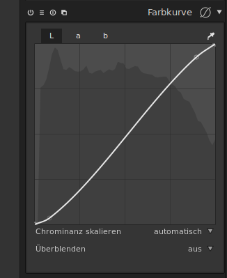 How to enable curve for colour values (a,b) in curves module in darktable?