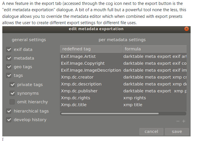 in some rare instances the resulting metadata including the development is larger than allowed by the file format (not sure if it applies for TIFF, but it certainly does for JPG). In those cases it will be truncated and the rest lost(*). Make sure to enable the option to compress that metadata to minimize the risk (darktable 3.8 user manual - storage)