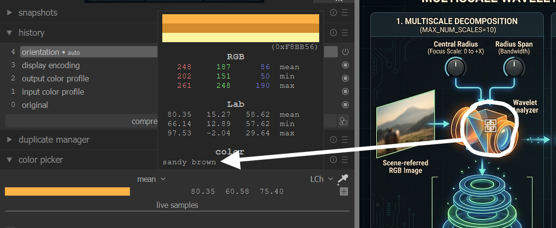 Also the DT picker can be set to use lch and if you hover on anything you have sampled it will tell you the color…