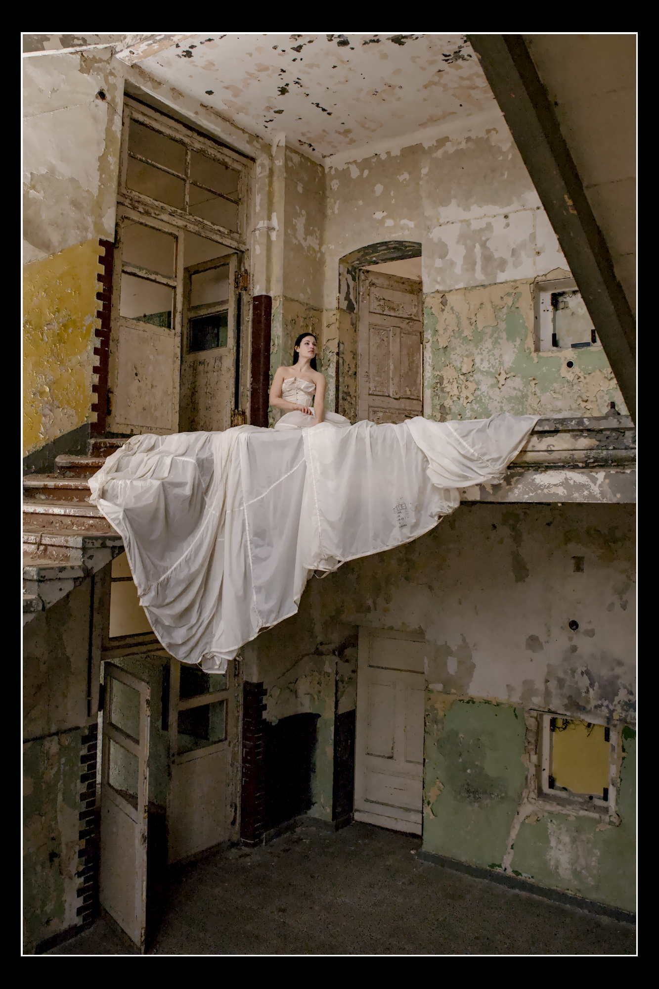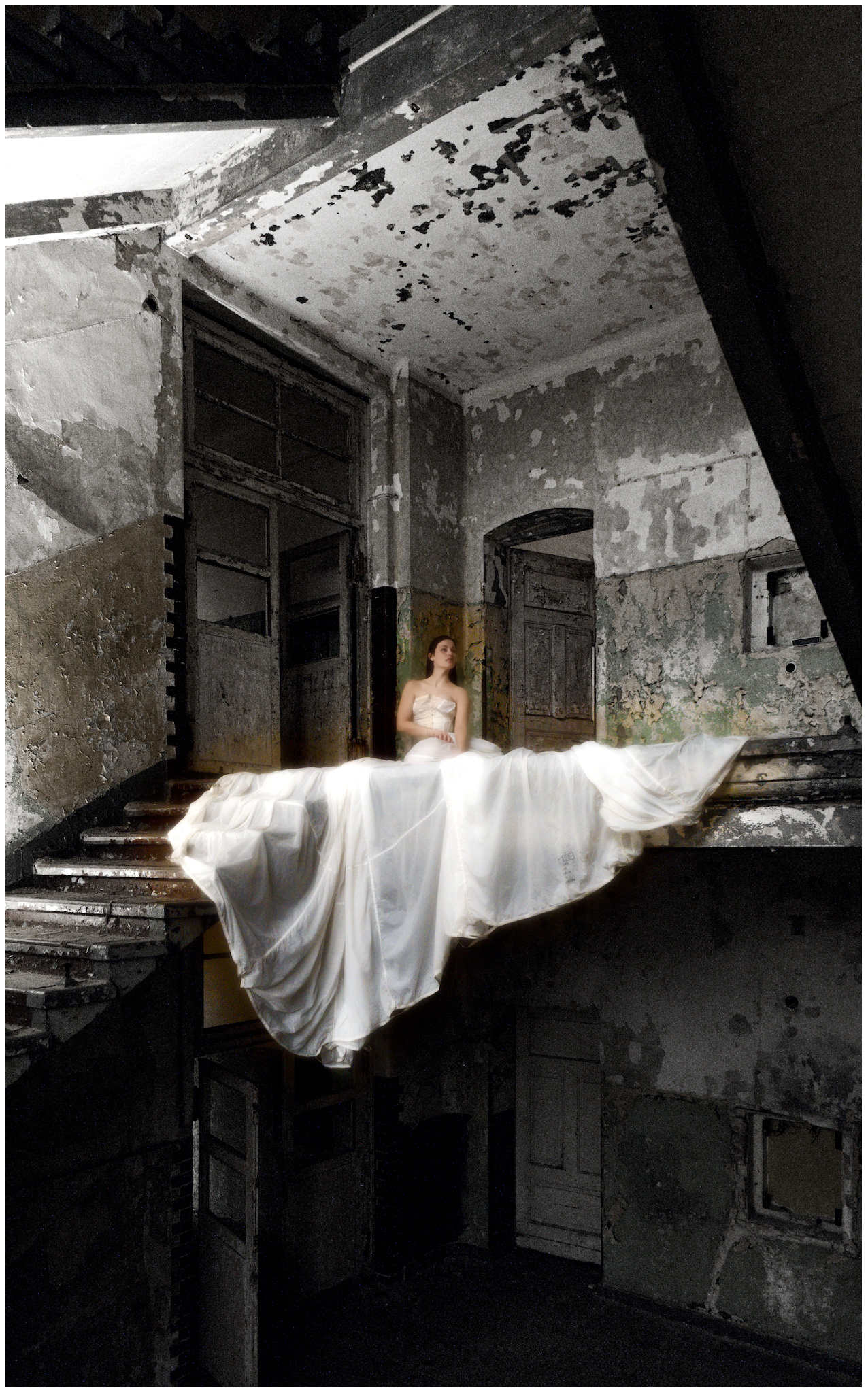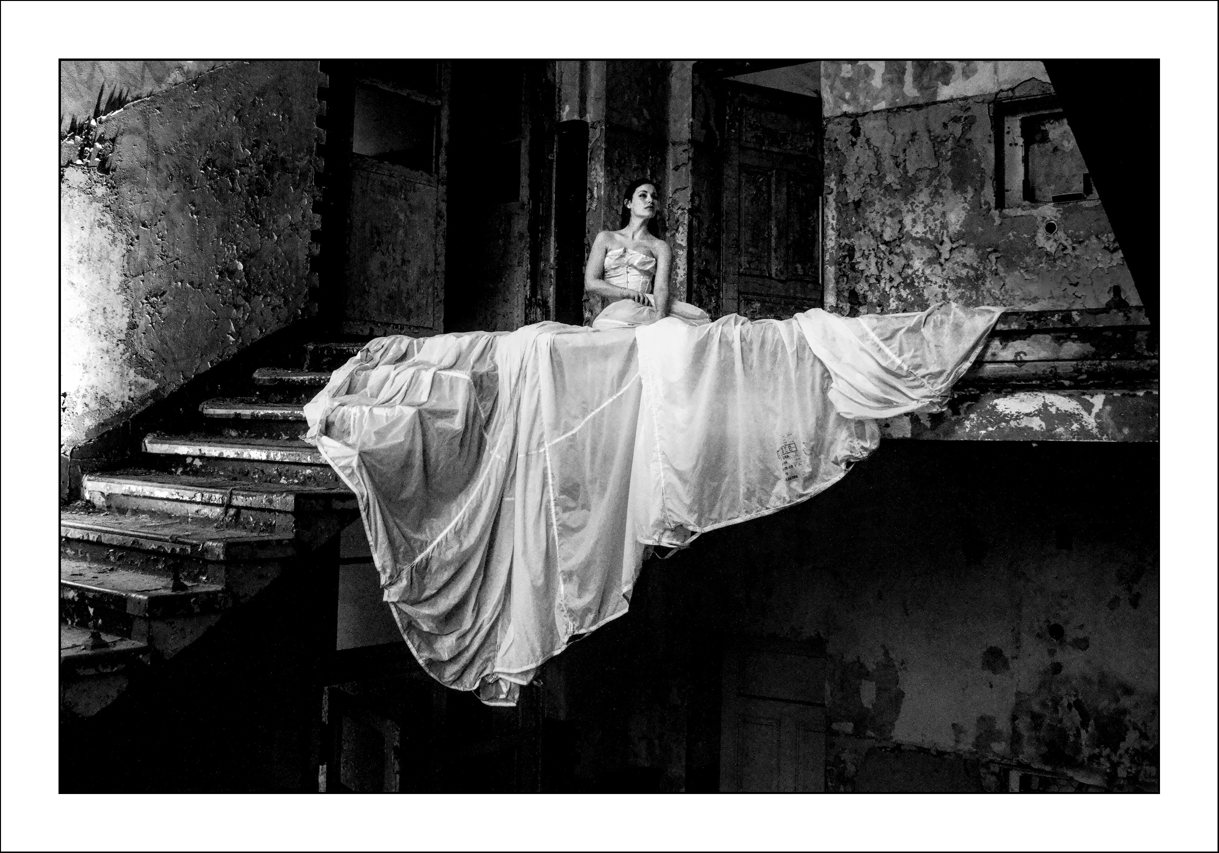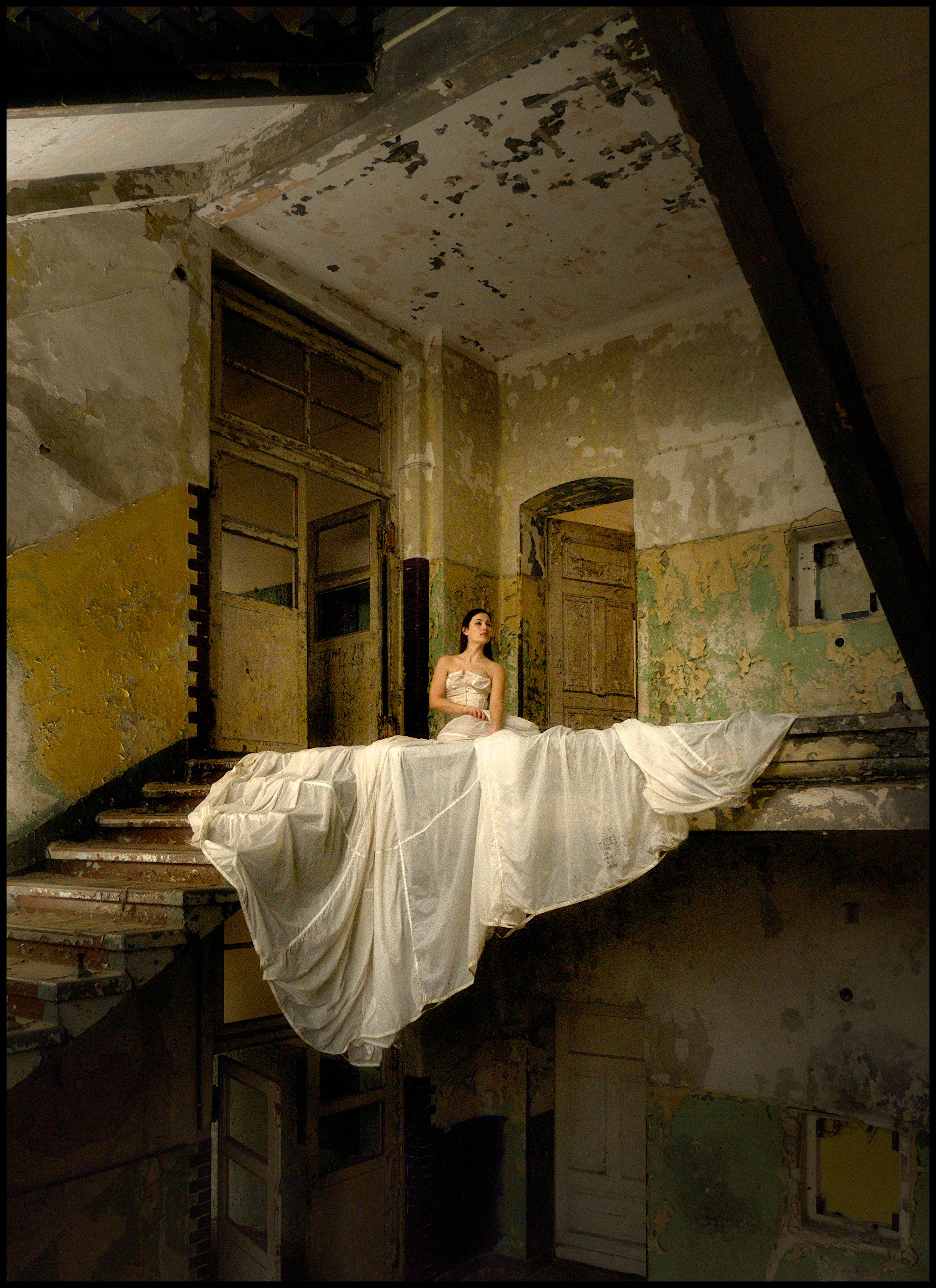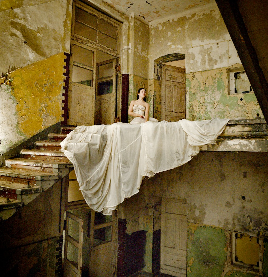 I am looking for other ways to present this image. Anything that supports the difference between the torn building and the dress of the bride. Maybe something b/w … anyway, I know that you can do better than my version.