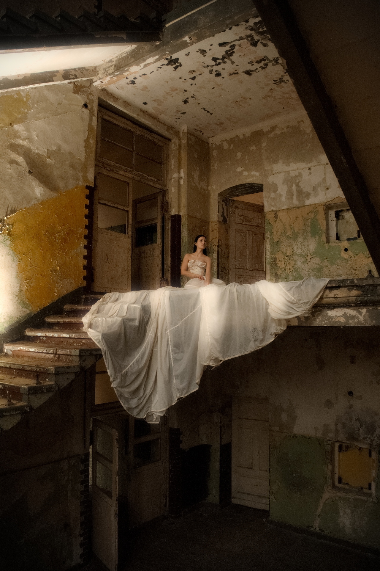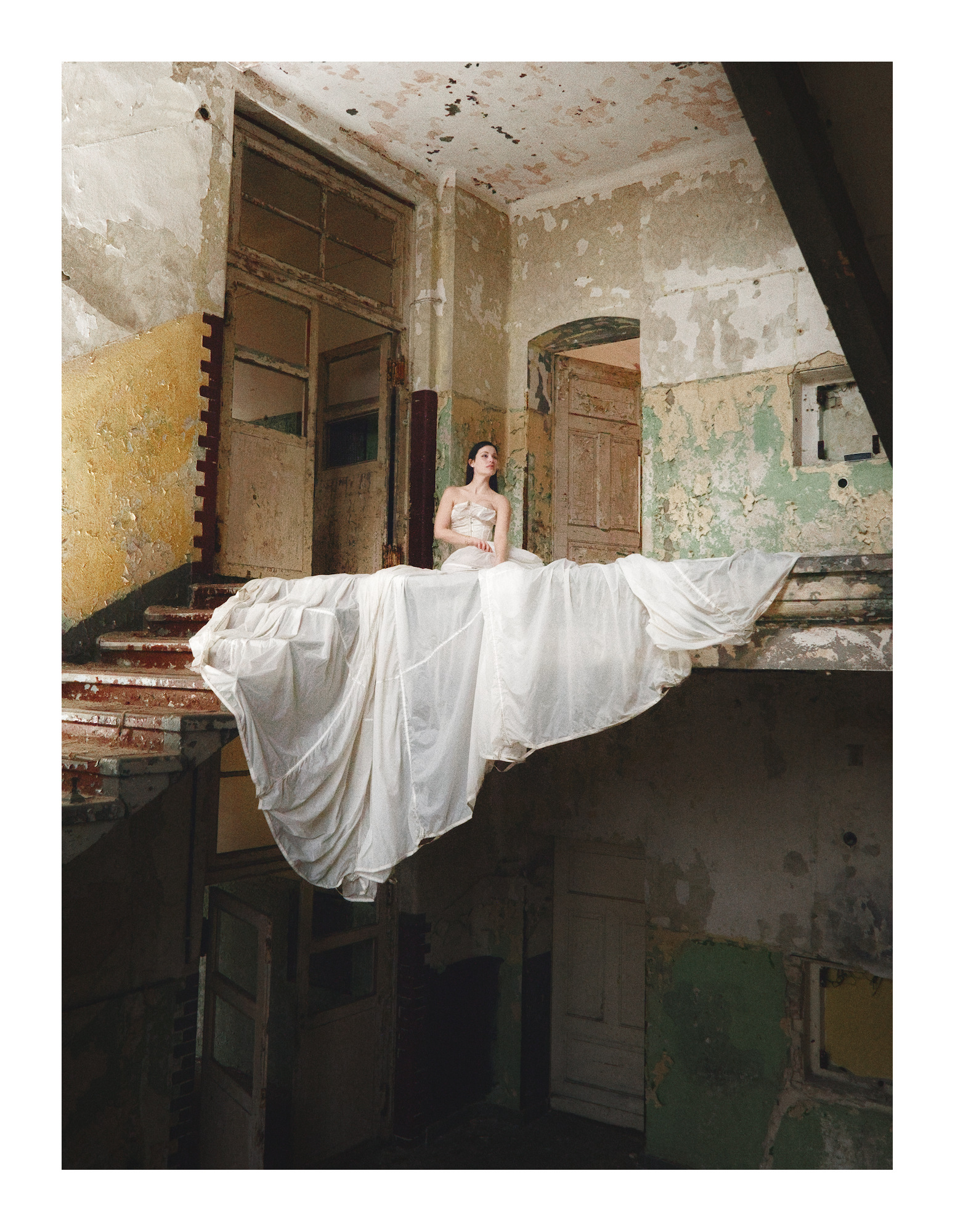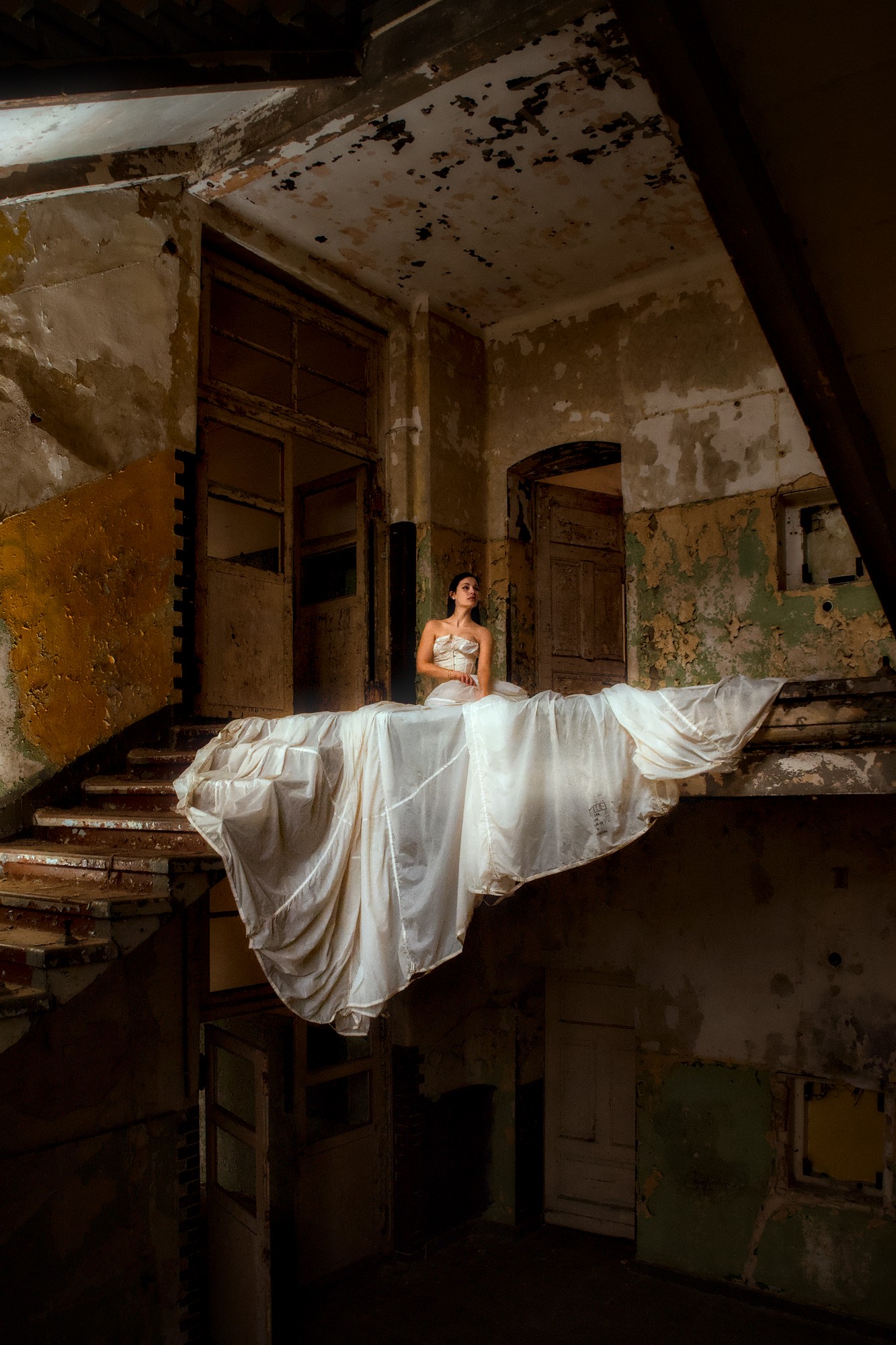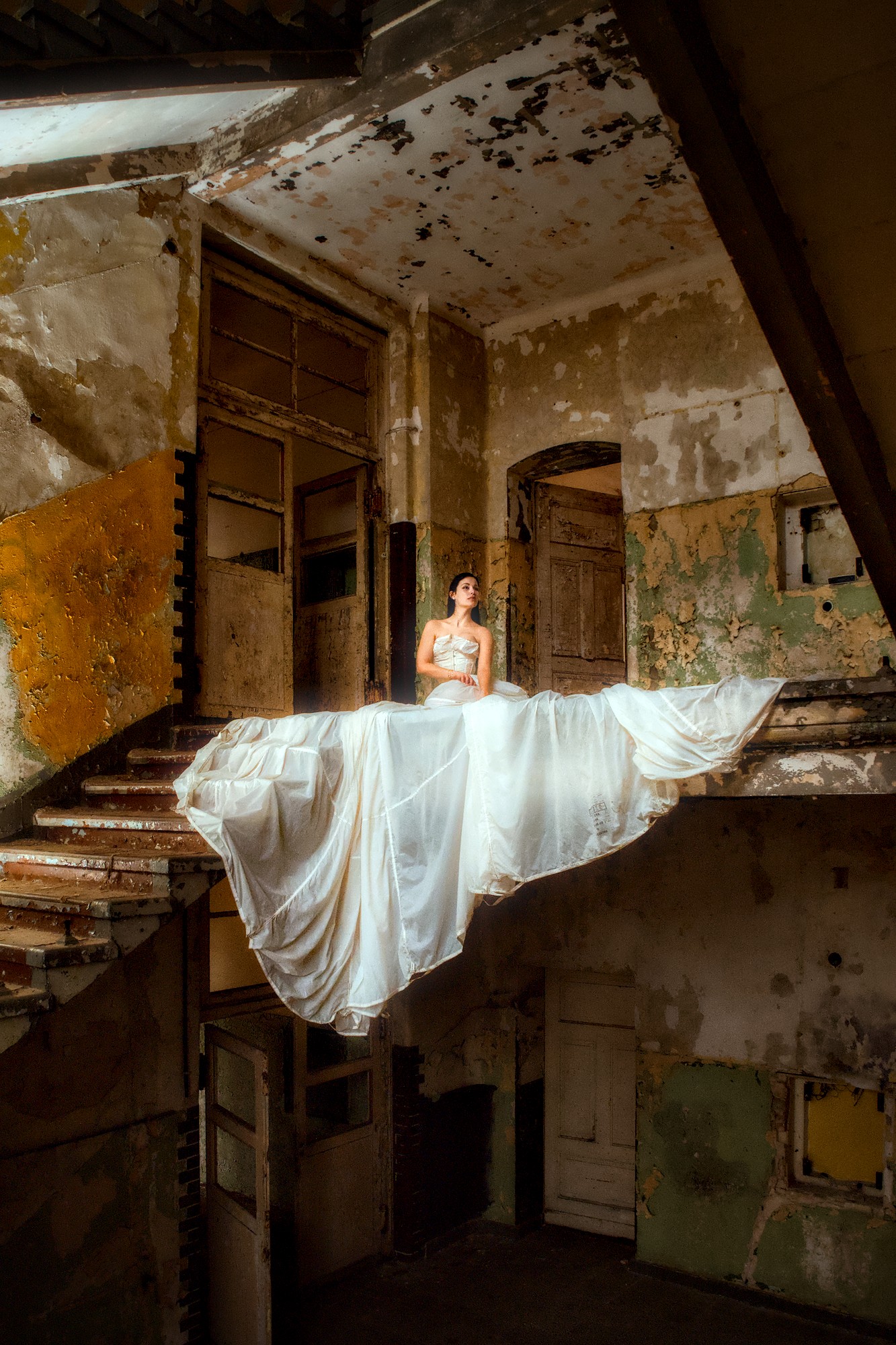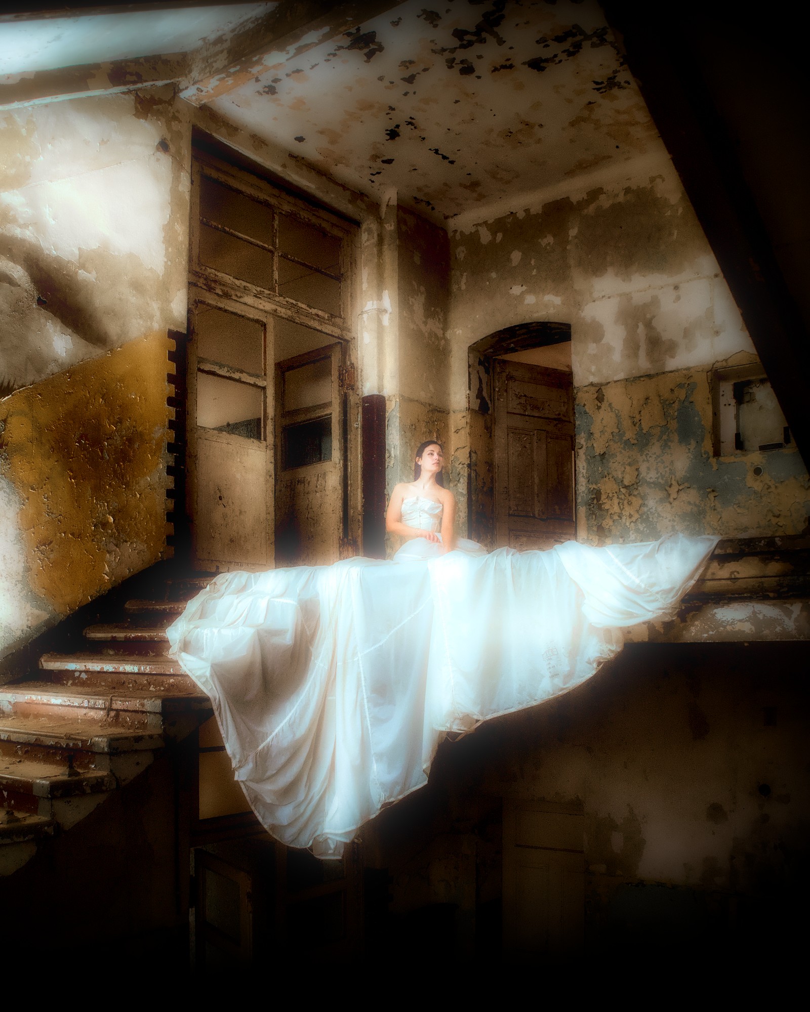 I am looking for other ways to present this image. Anything that supports the difference between the torn building and the dress of the bride. Maybe something b/w … anyway, I know that you can do better than my version.