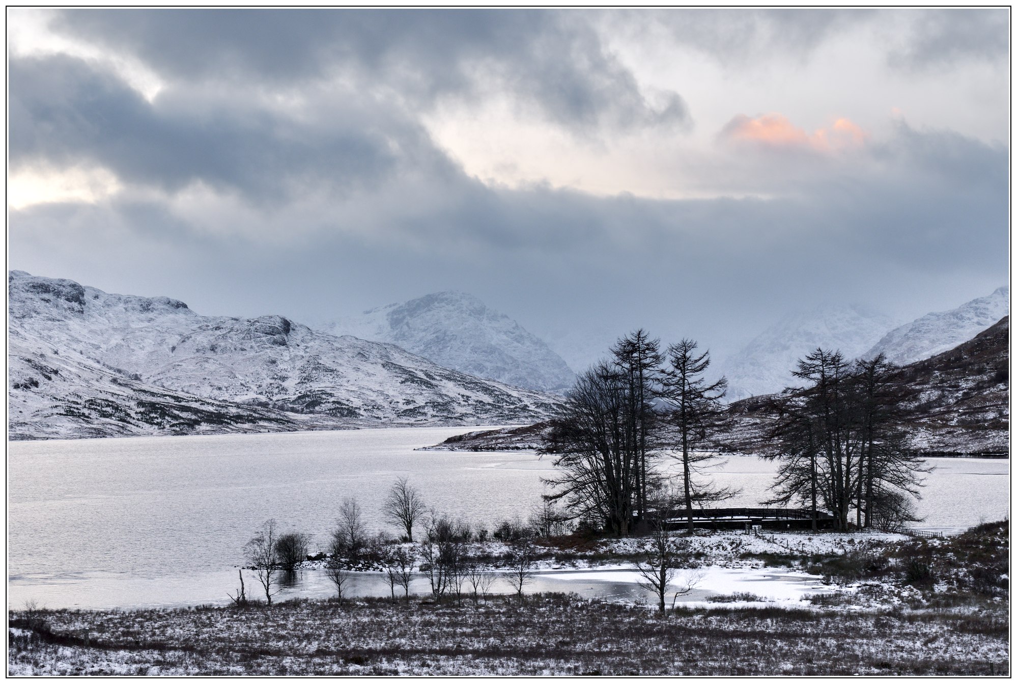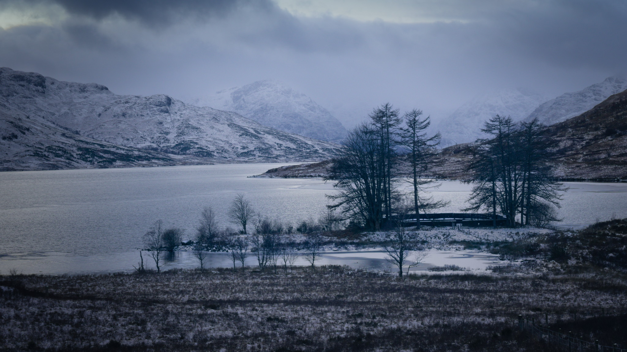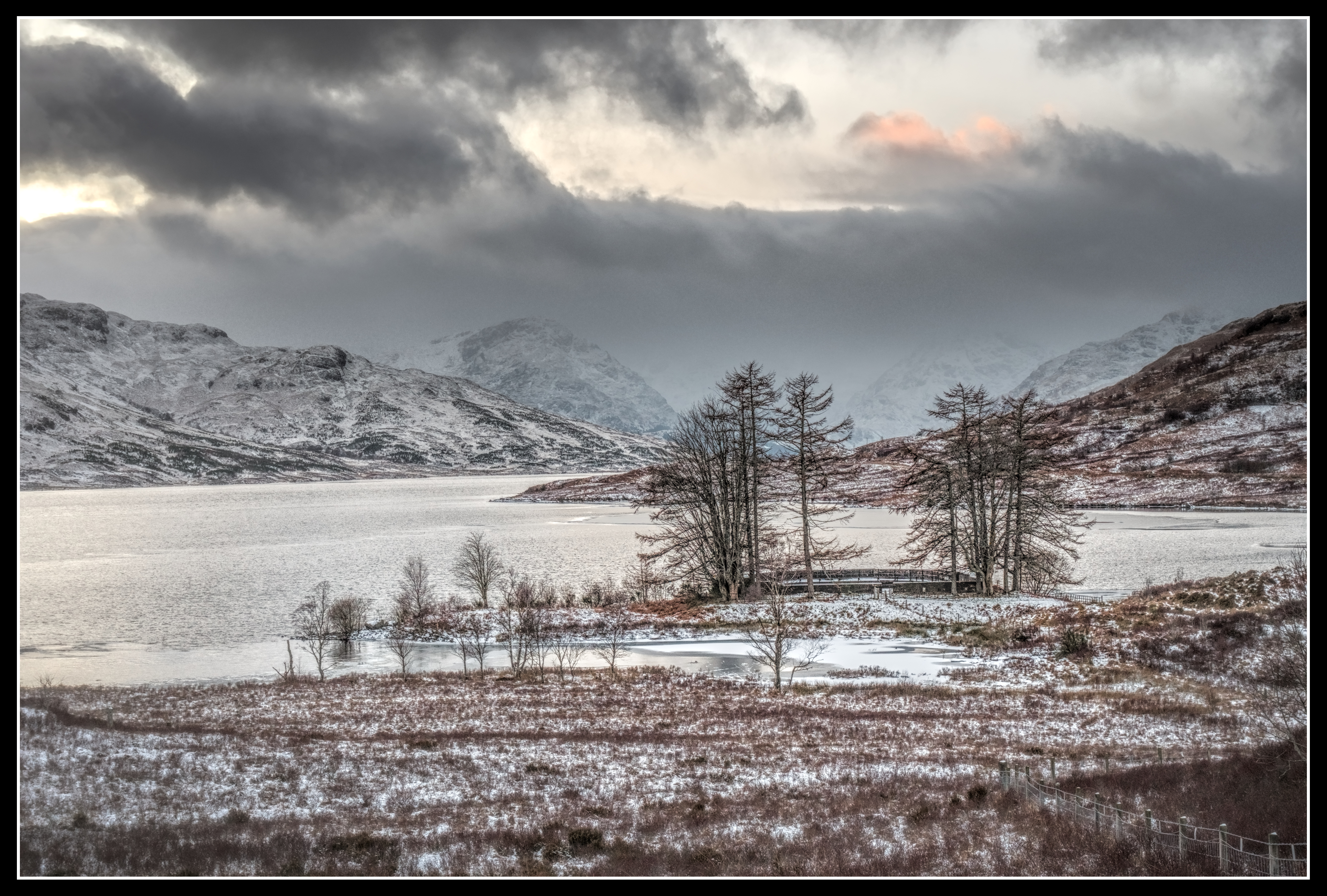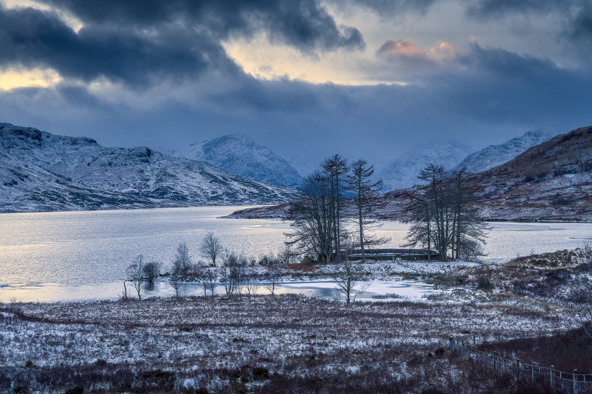 The pic is at Loch Arklet in Stirling in the Scottish Highlands. There’d been a day or so of light snow, followed by freezing temperatures (minus high single digits overnight) for two days in the area so decided to see what it was like. The road to the loch from Aberfoyle becomes single track and though somewhat gritted, it started to get too sketchy, broken up and icy with compacted snow for the 2WD I was driving. So this was as far I got. You can drive quite a bit further down an even narrower unmarked road the length of the loch and I’d tried to call a hotel at the end of that road to see if it was passable but they said the place was closed from October for the winter, Overlook Hotel-style.