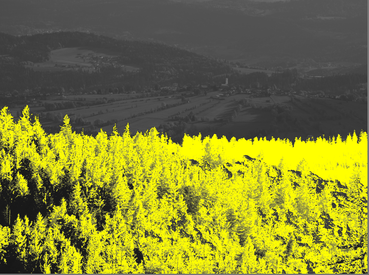 I used the G (Gray/L-channel) slider to get the sharp forest edge.