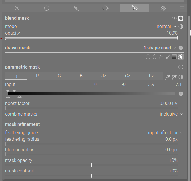 Second Module + Raster Mask: If I create a solid mask in a second module and try to use it as a Raster Mask, Darktable (in my version) forces me to choose EITHER Raster OR Parametric. I cannot use the Raster mask as a “boundary” and then use Parametric sliders within that boundary in the same module.