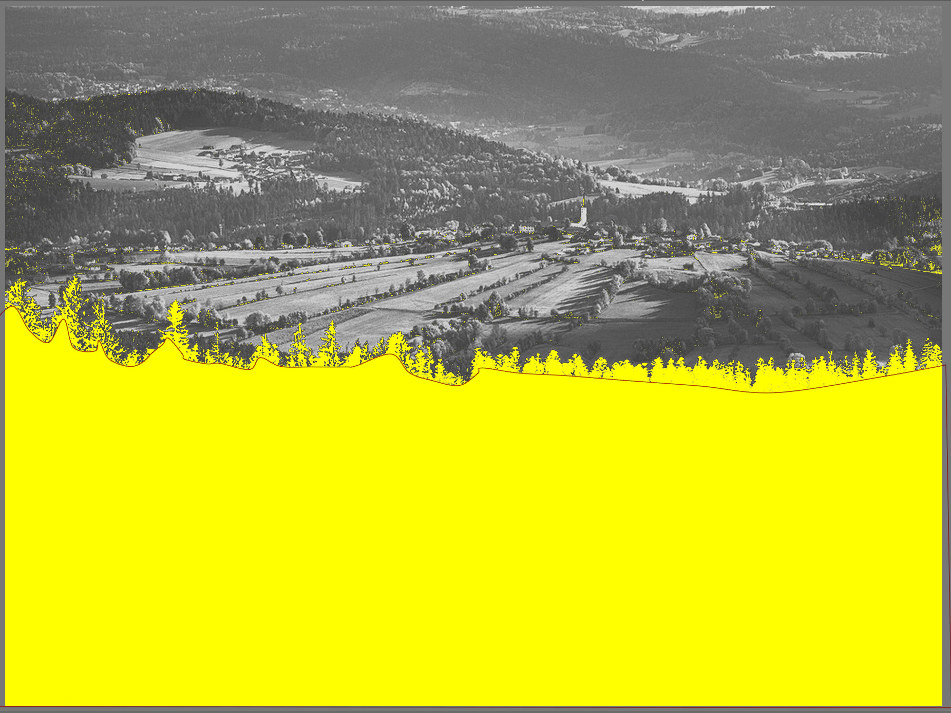 The Problem: The edge is perfect, but the mask has many “holes” inside the forest because some trees have similar tonal values to the excluded background. (See Mask1.jpg)