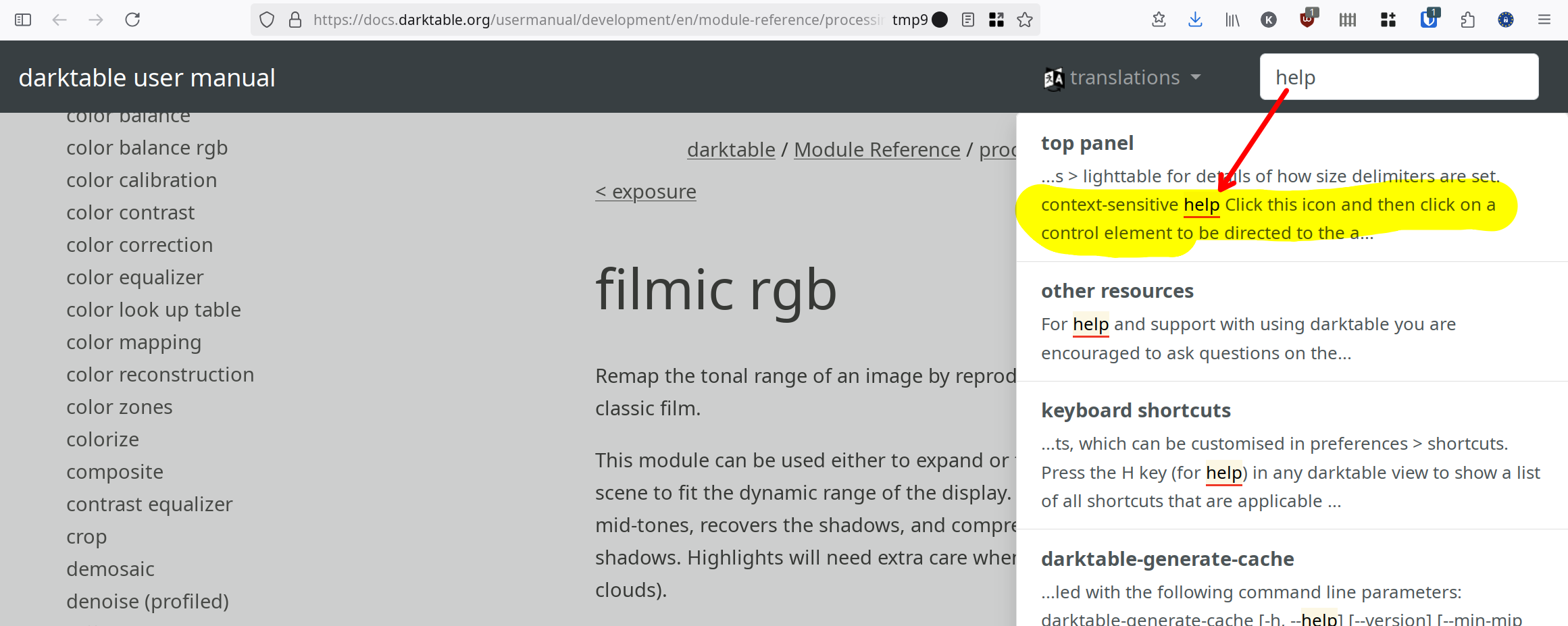 How about each module has a help icon which takes your browser to the relevant section of the current manual?