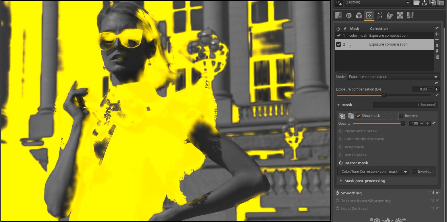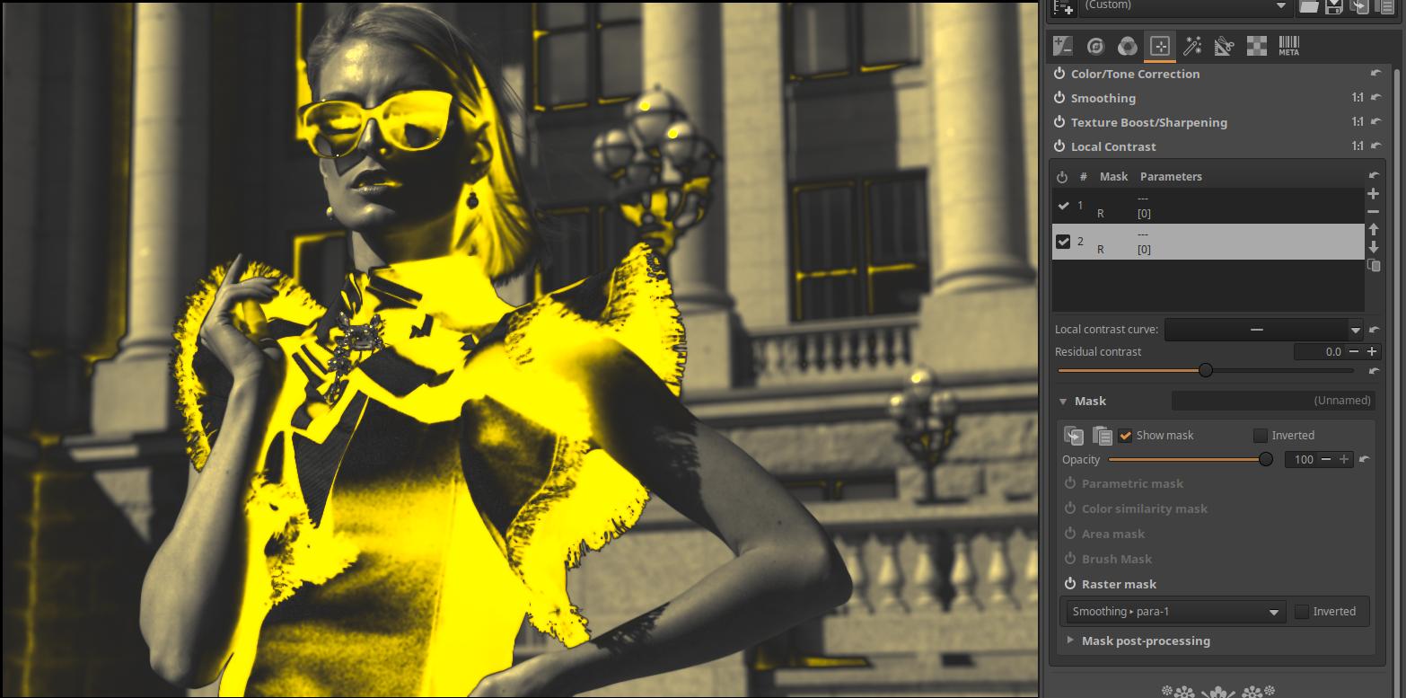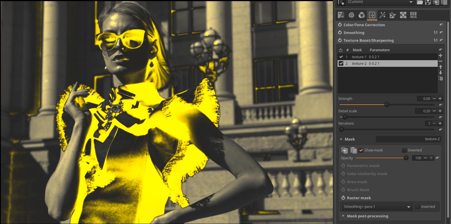 In the Local Contrast and Texture boost/Sharpening tool, we don’t get quite the same mask yet.