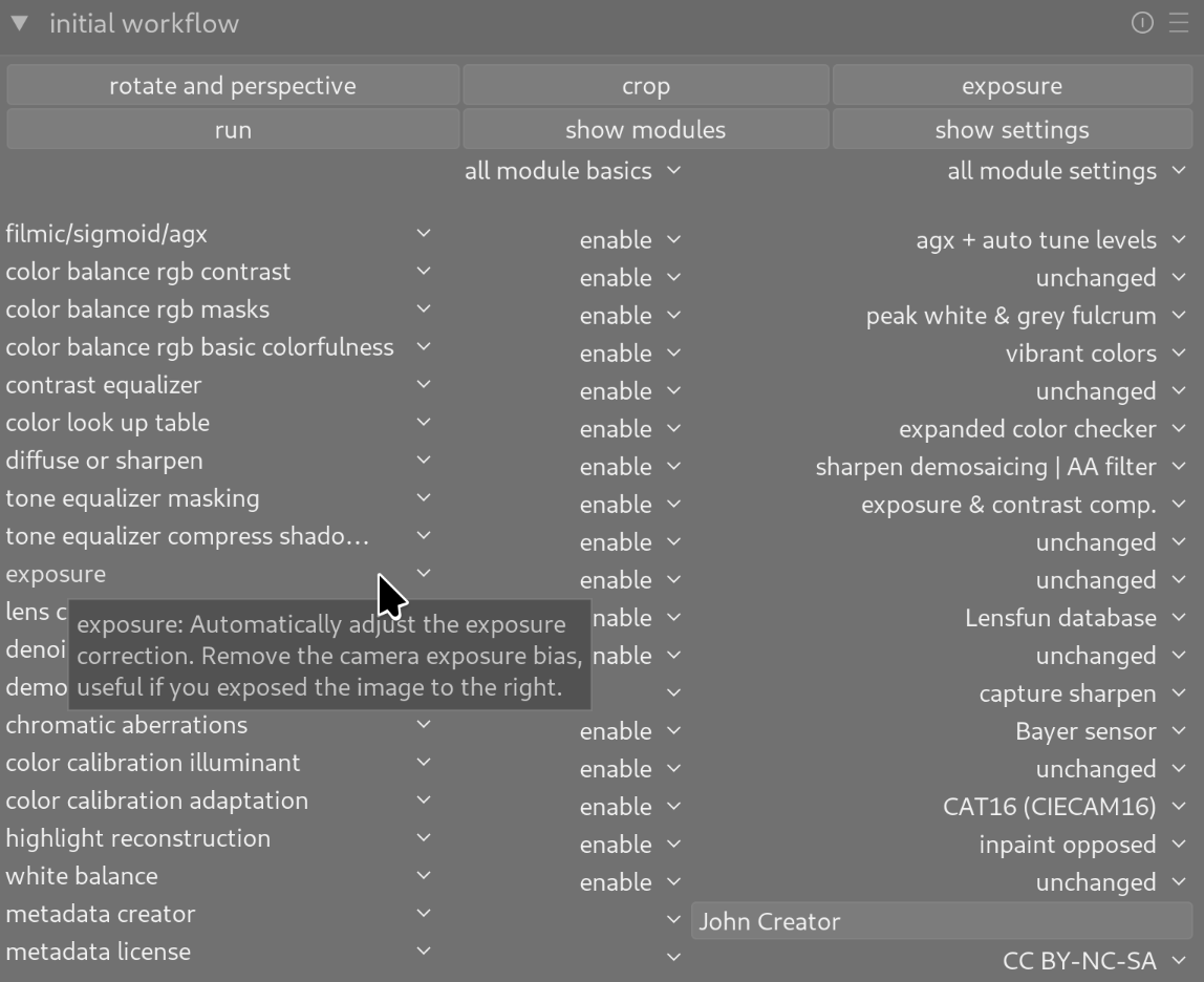 There is a new version of the Initial Workflow Module, now supporting darktable 5.4 and AgX. The script is an add-on for darktable.