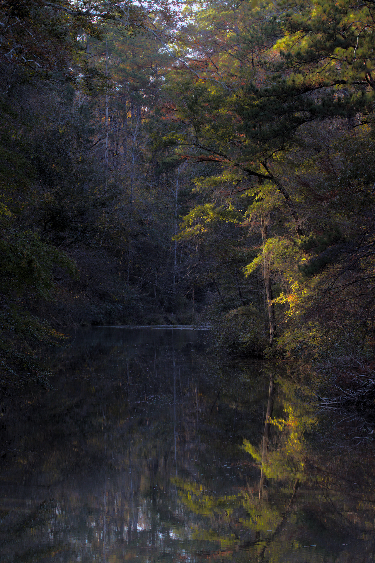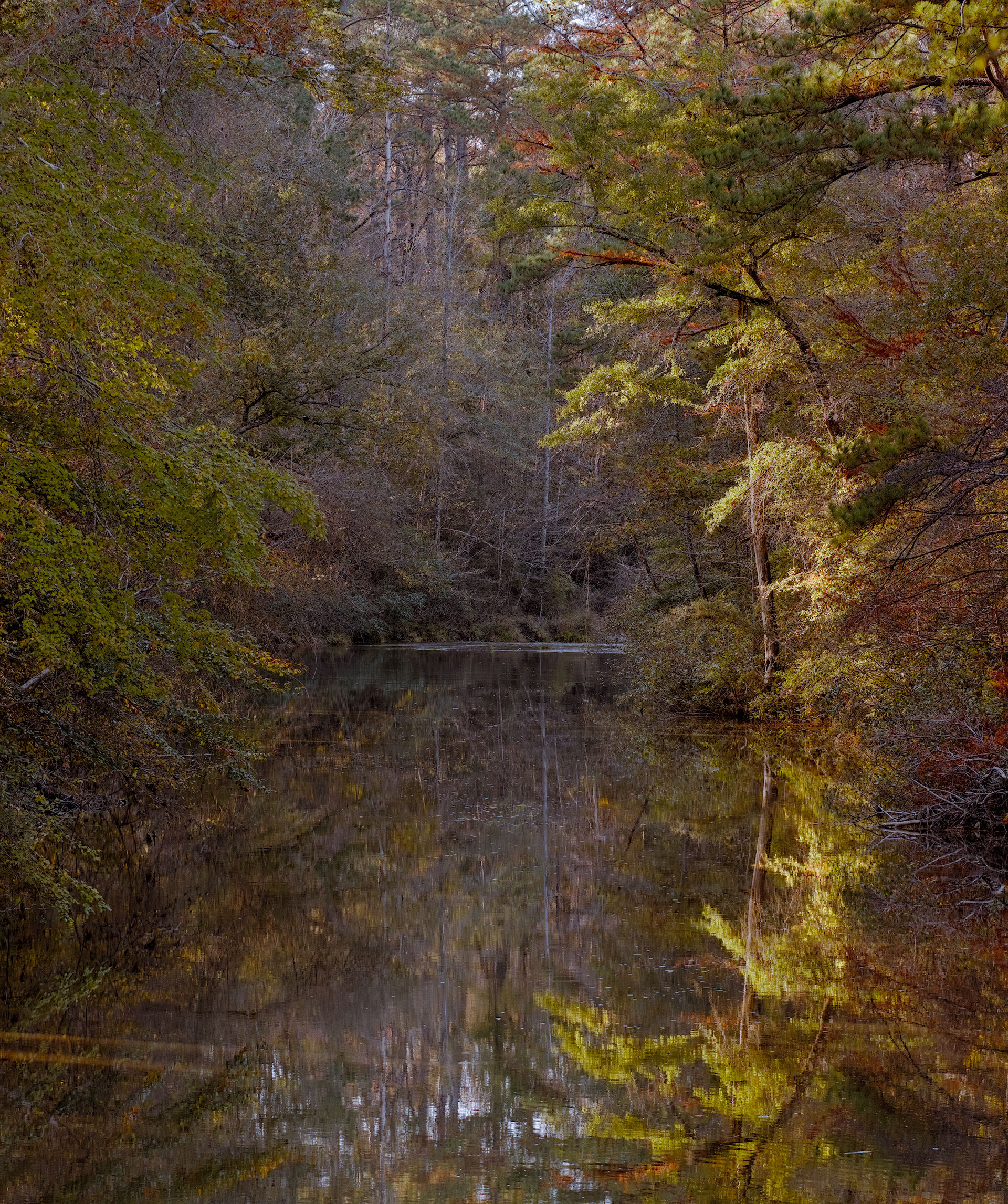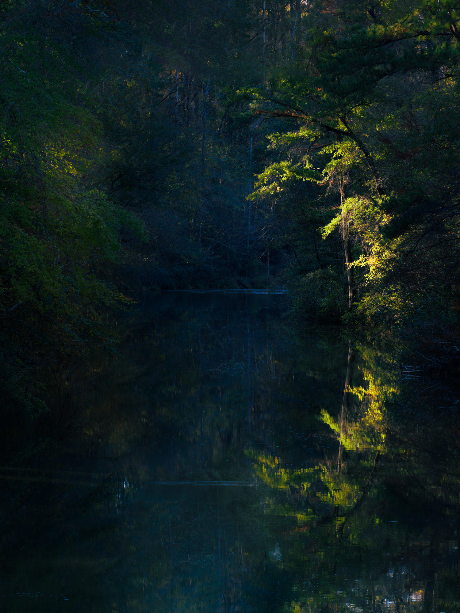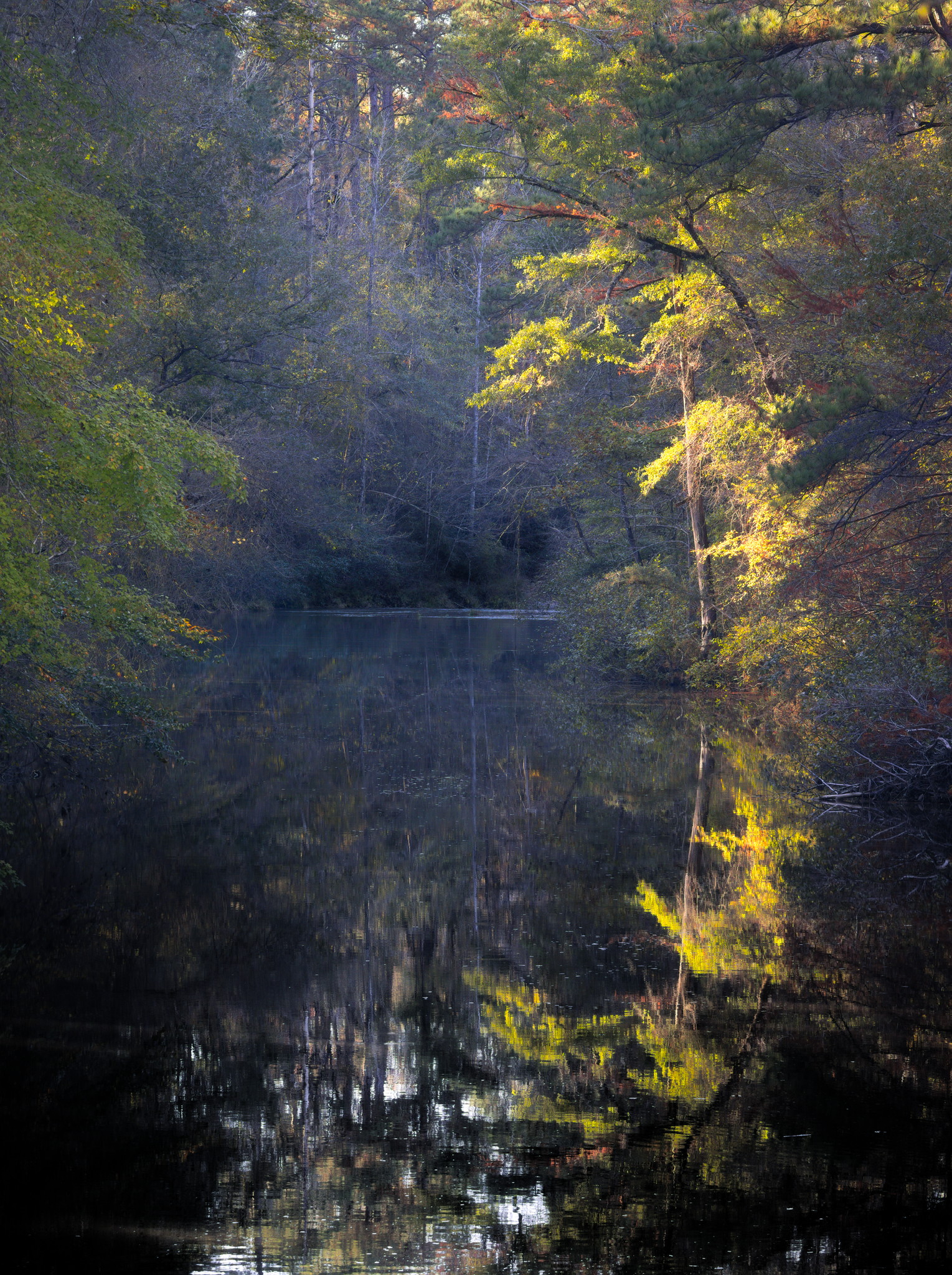 Well, kinda. At least it’s a view down a bayou from sunlit fall color into the darker distance.