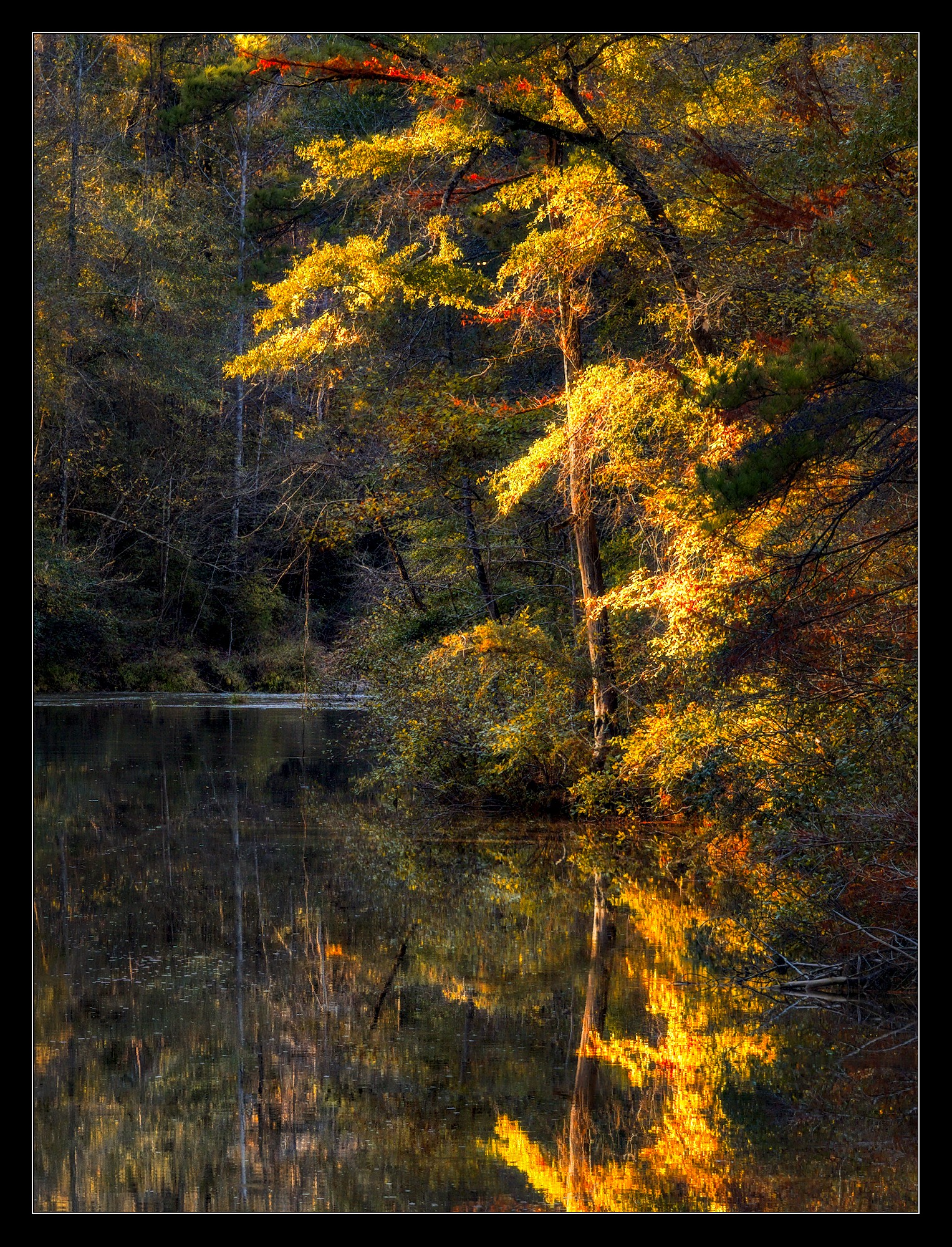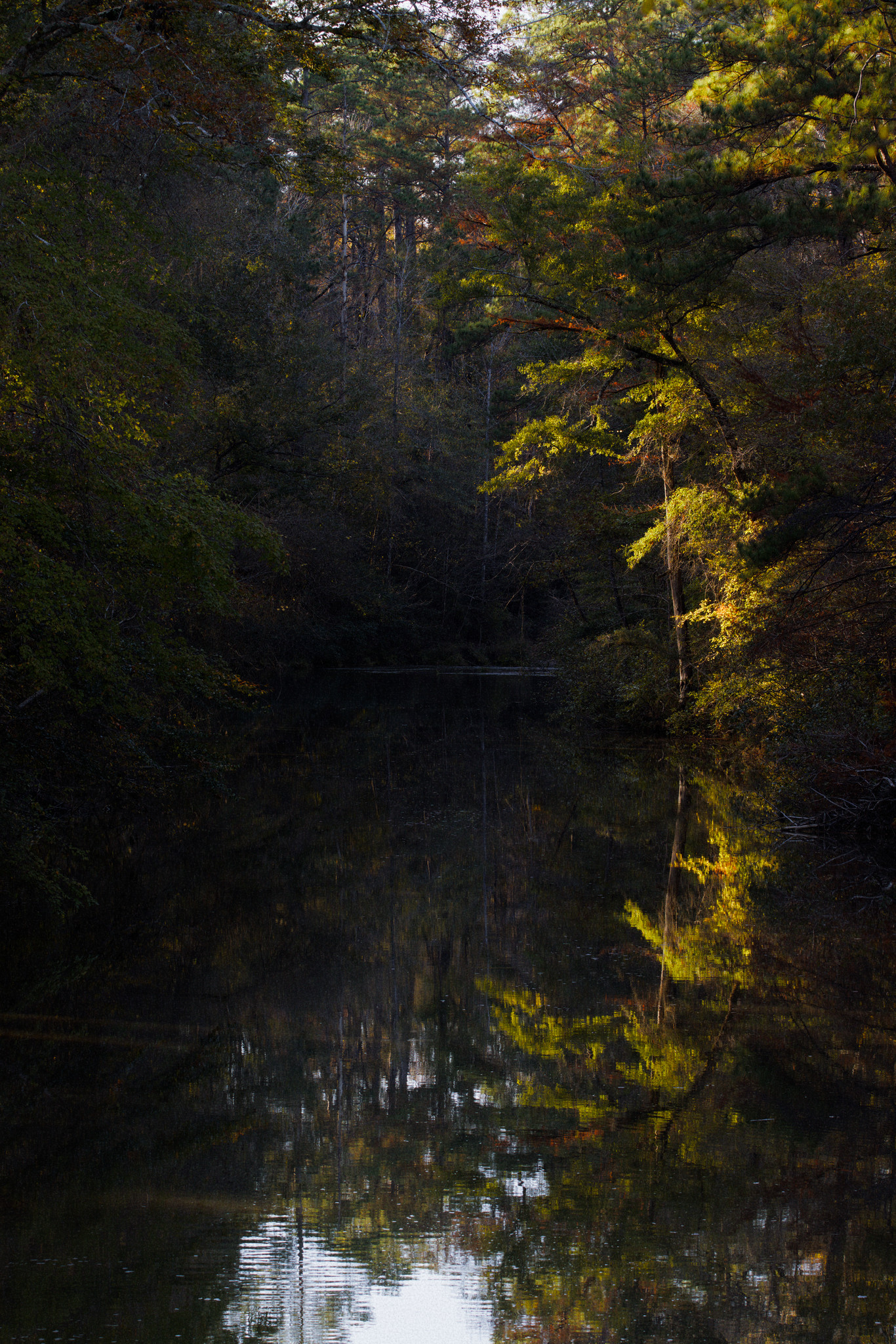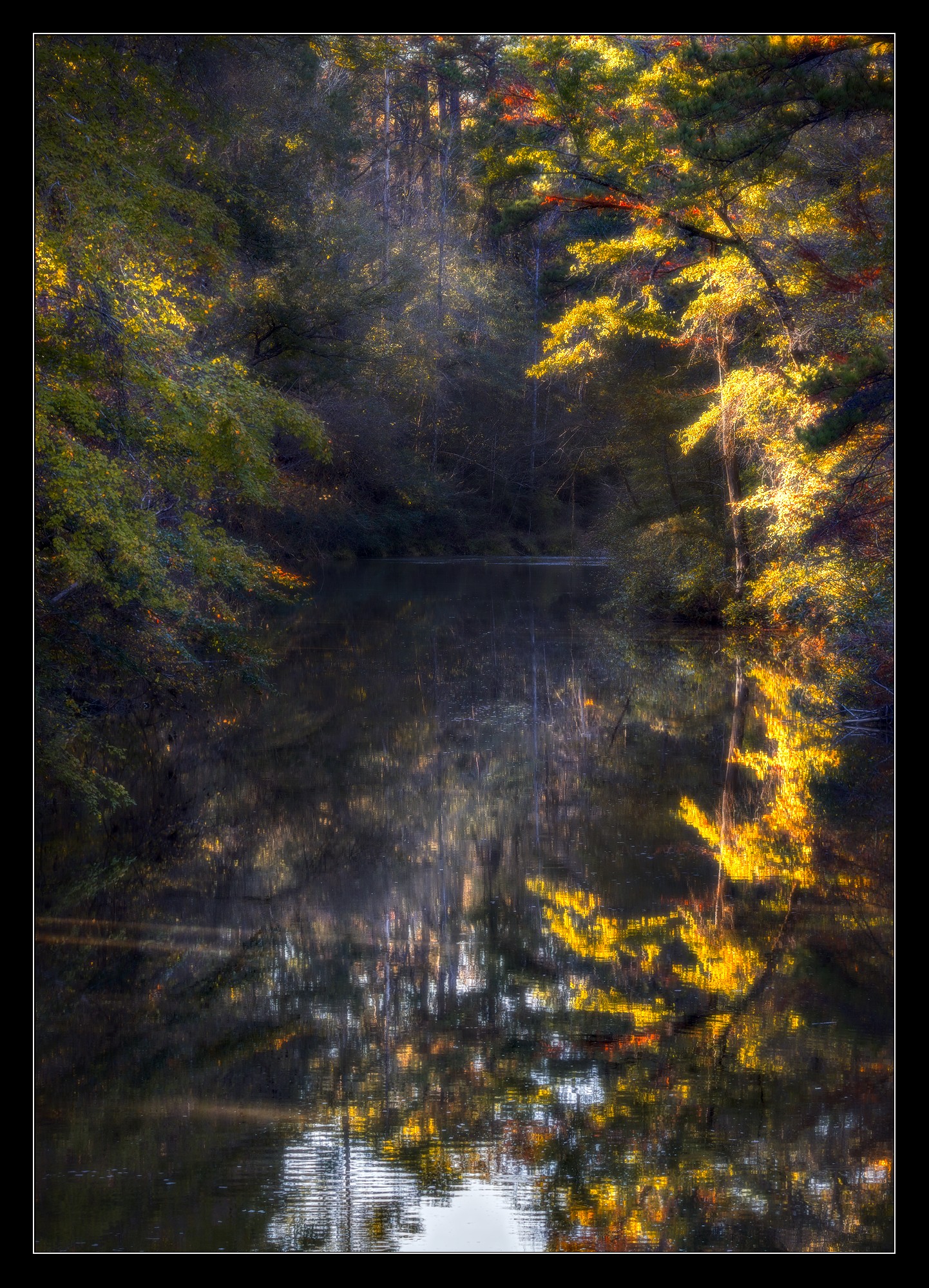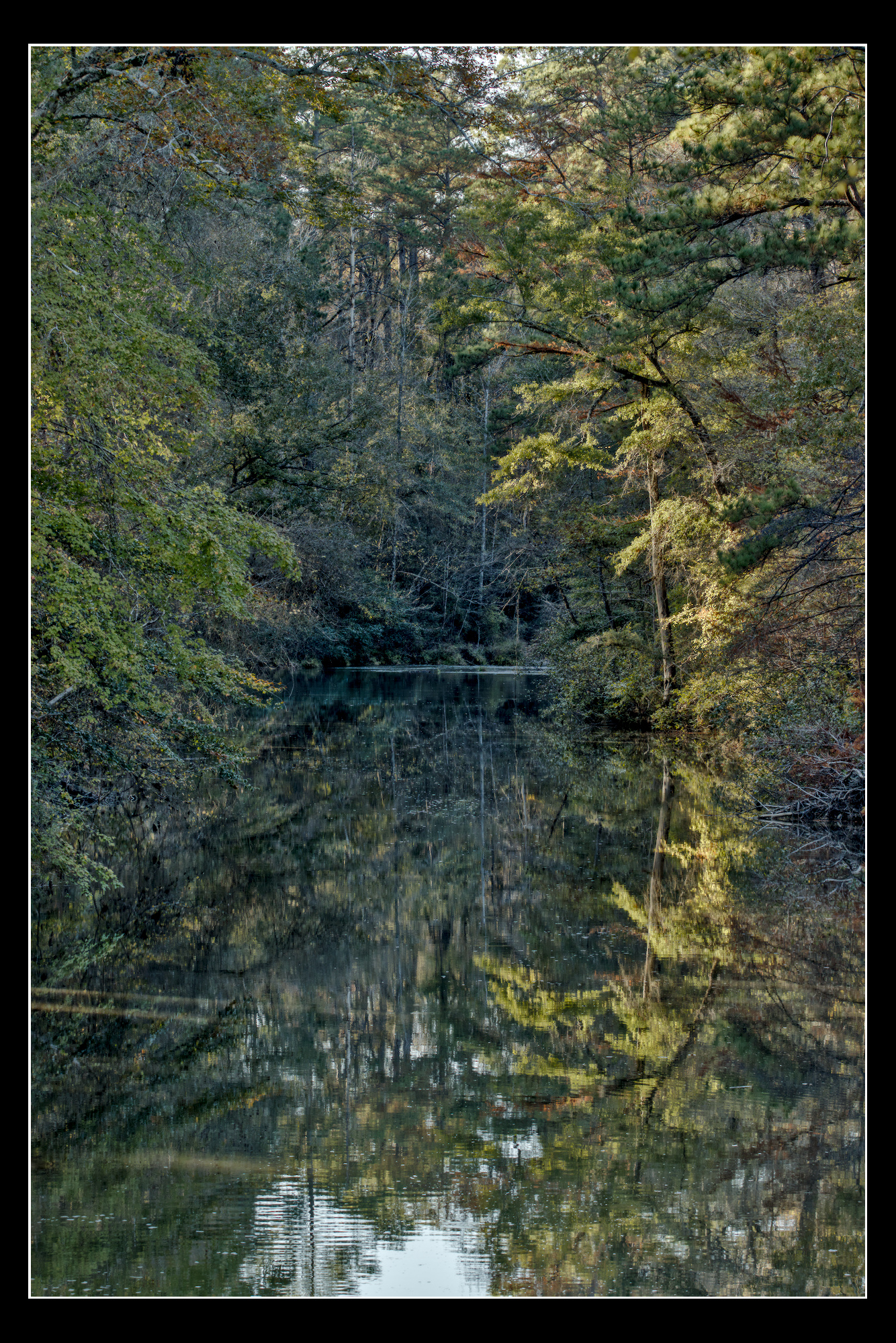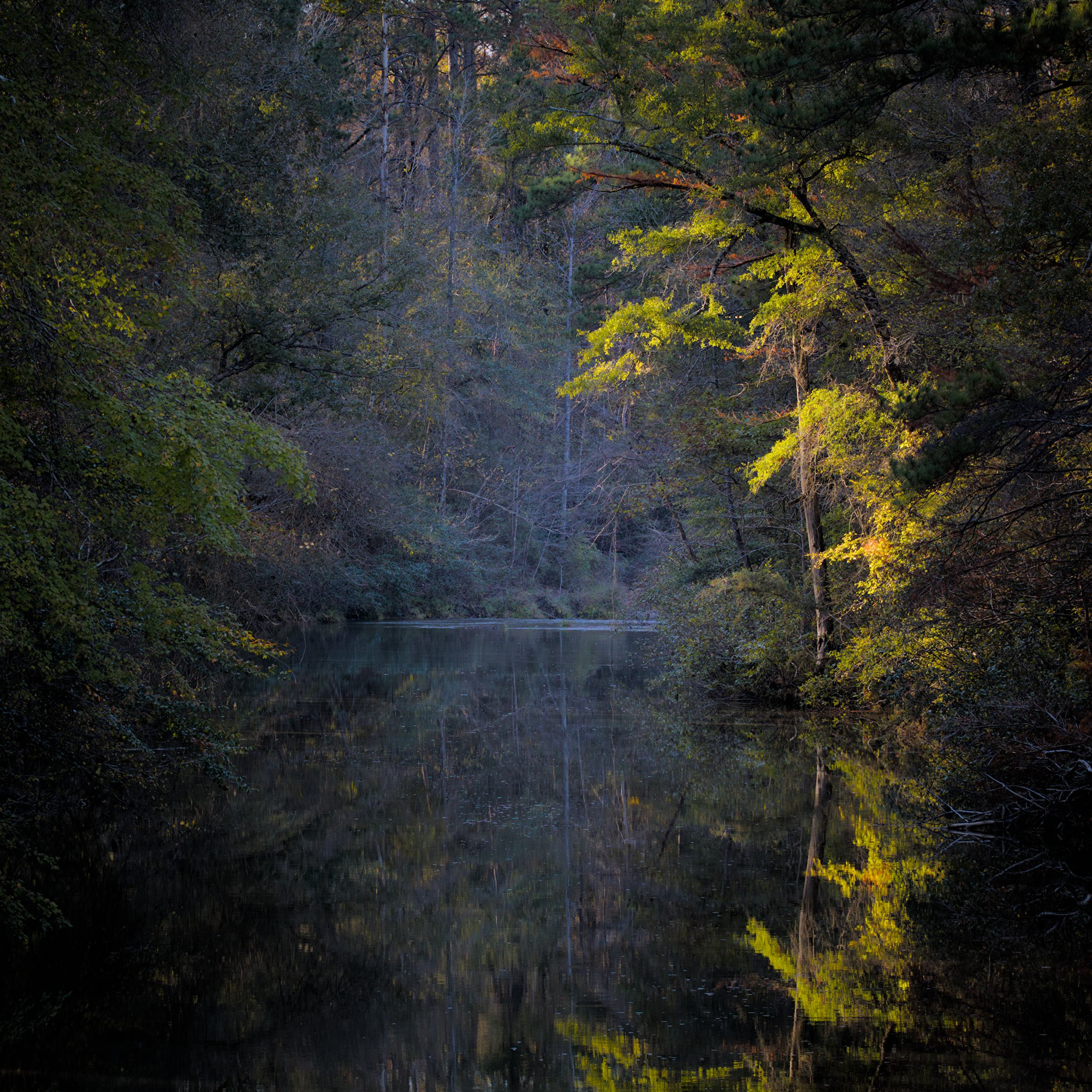 Well, kinda. At least it’s a view down a bayou from sunlit fall color into the darker distance.