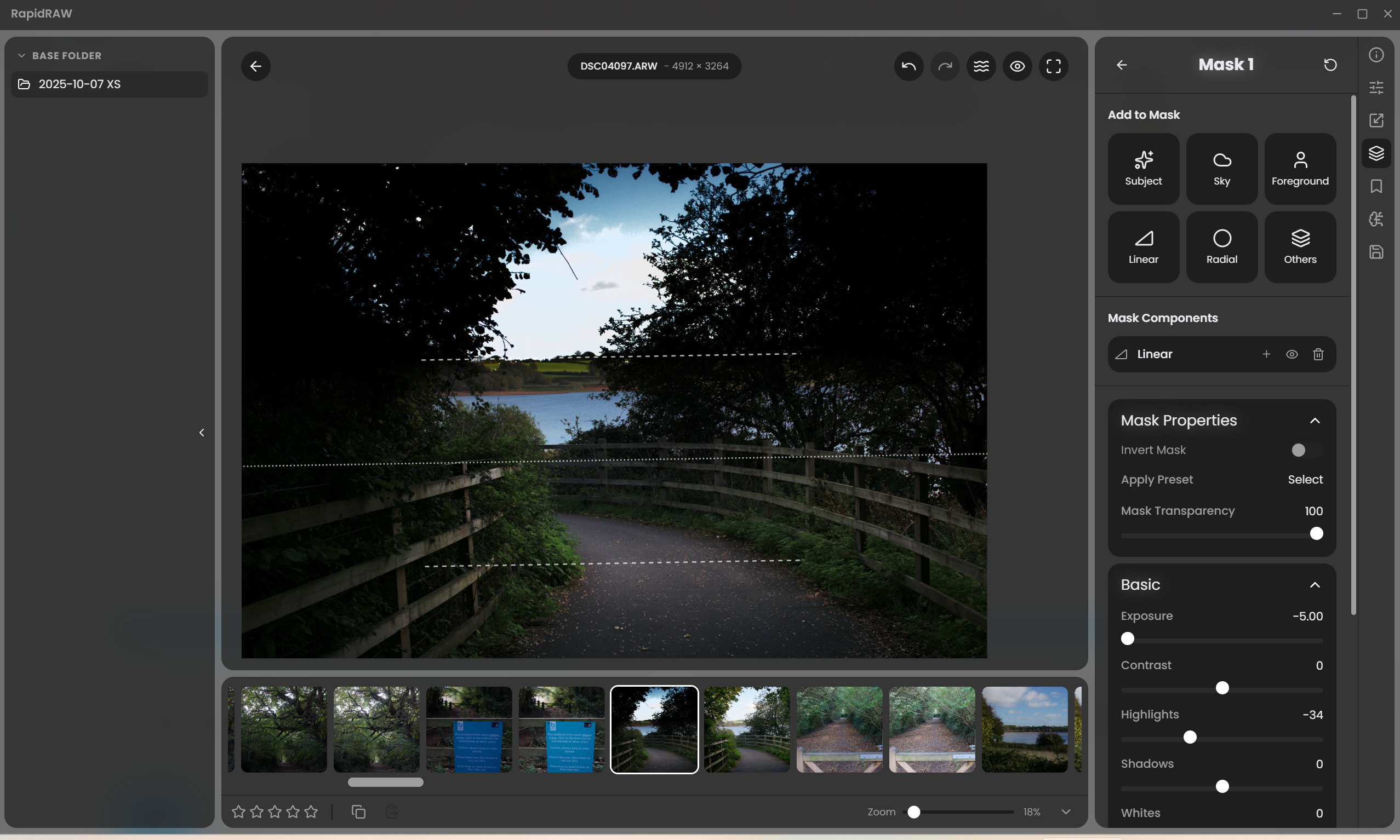 - Advanced Masking: The masking system now includes AI powered subject, sky, and foreground detection (using local models), which can be combined with traditional linear, radial, and brush masks.