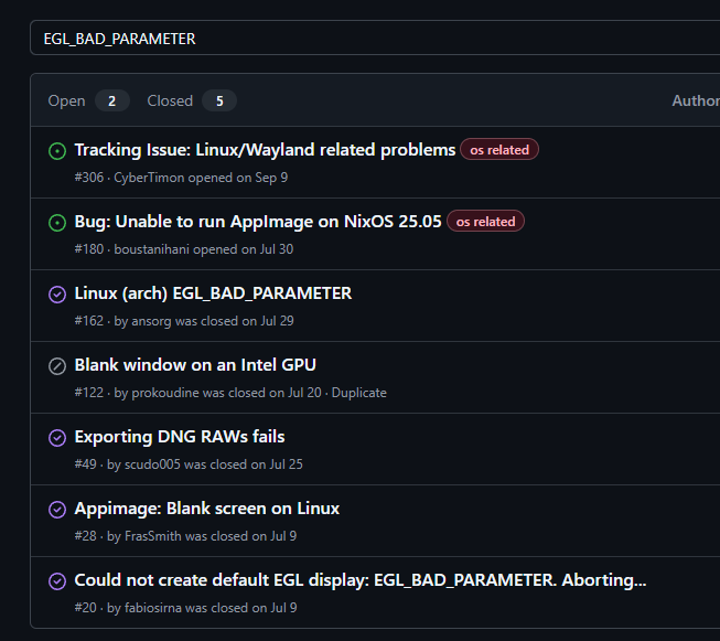 Already mentioned, see post #8 in this thread. The workaround mentioned in post #10 doesn’t work well for me, on Xubuntu. The app freezes and/or freezes my pc and when it does not freeze, it’s unusable slow. So I follow the development of RapidRAW on my iMac…
