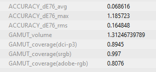 The DisplayCal profile viewer shows that it has close to 100% coverage of sRGB (and Rec.709) but not AdobeRGB.