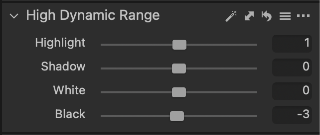 And with this 4 sliders it is really easy to reduce the highlights, brighten up the shadows. If I am correct the white and black only affect the brightest and darkest 5% of the image respectively.