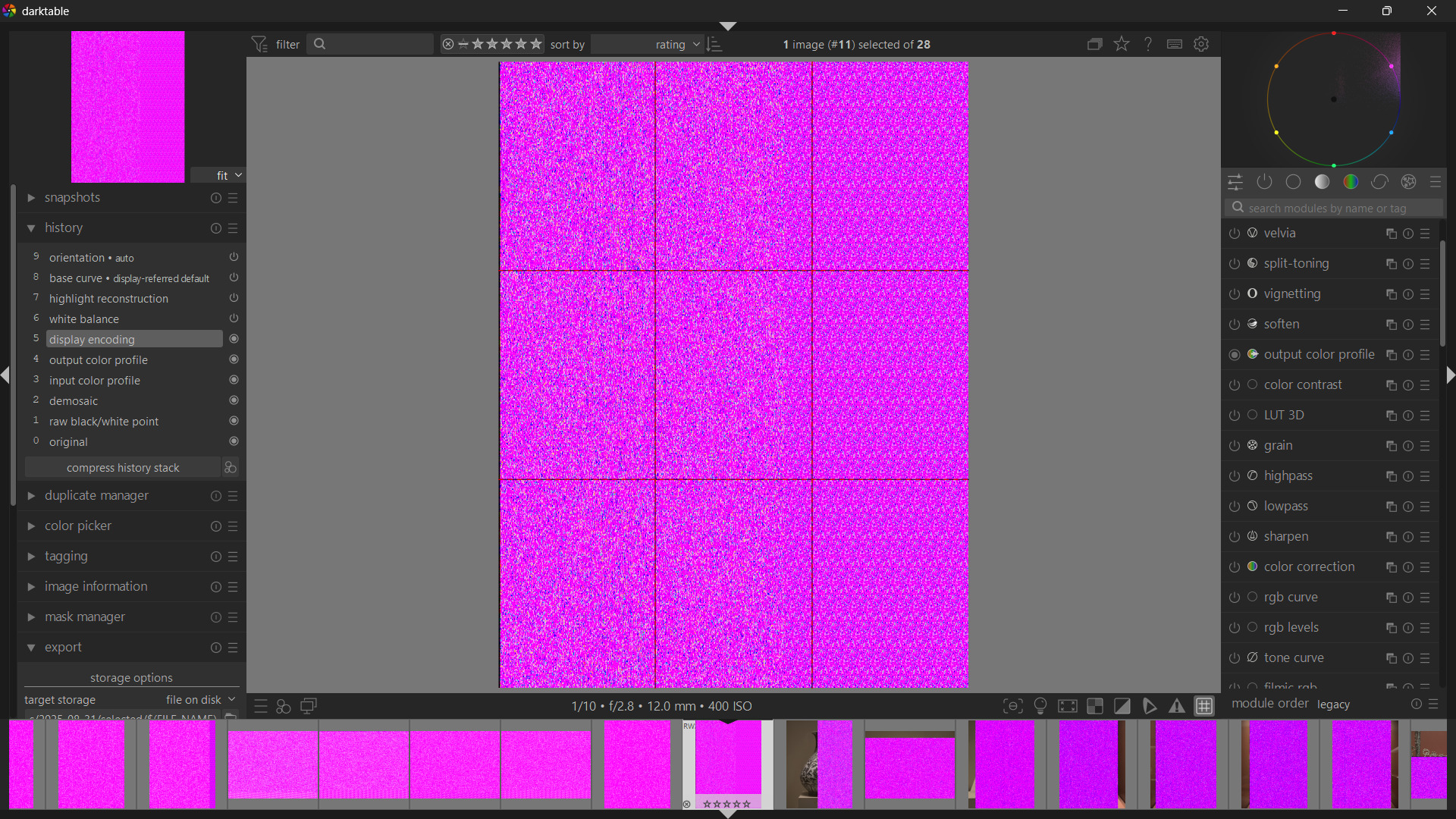 I took multiple shots in the same museum, and half of them encountered this “pinky” thumbnail issue. Some of them turn normal when I enter the darkroom, but some of them remain “pinky noisy” even in the darkroom.