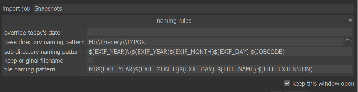 Works efficient, only need to name the import job, the rest is automated into the appropriate folder structure.