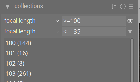 To resume this (slightly old) discussion about lighttable filters, I’m having trouble with filtering by focal length - specifically, by a focal length range.