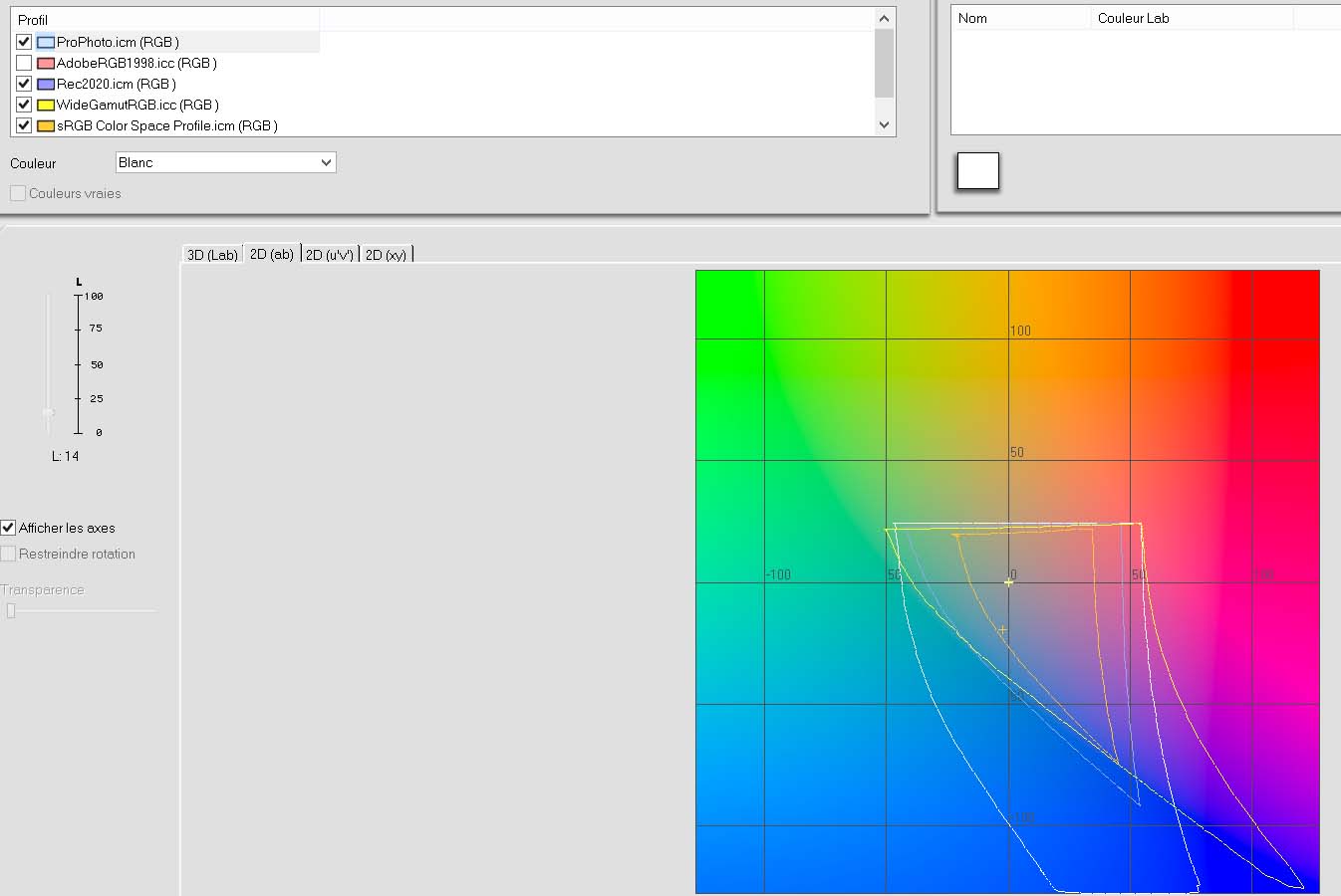 For exemple for L=14, Prophoto, Widegamut, Rec2020, sRGB