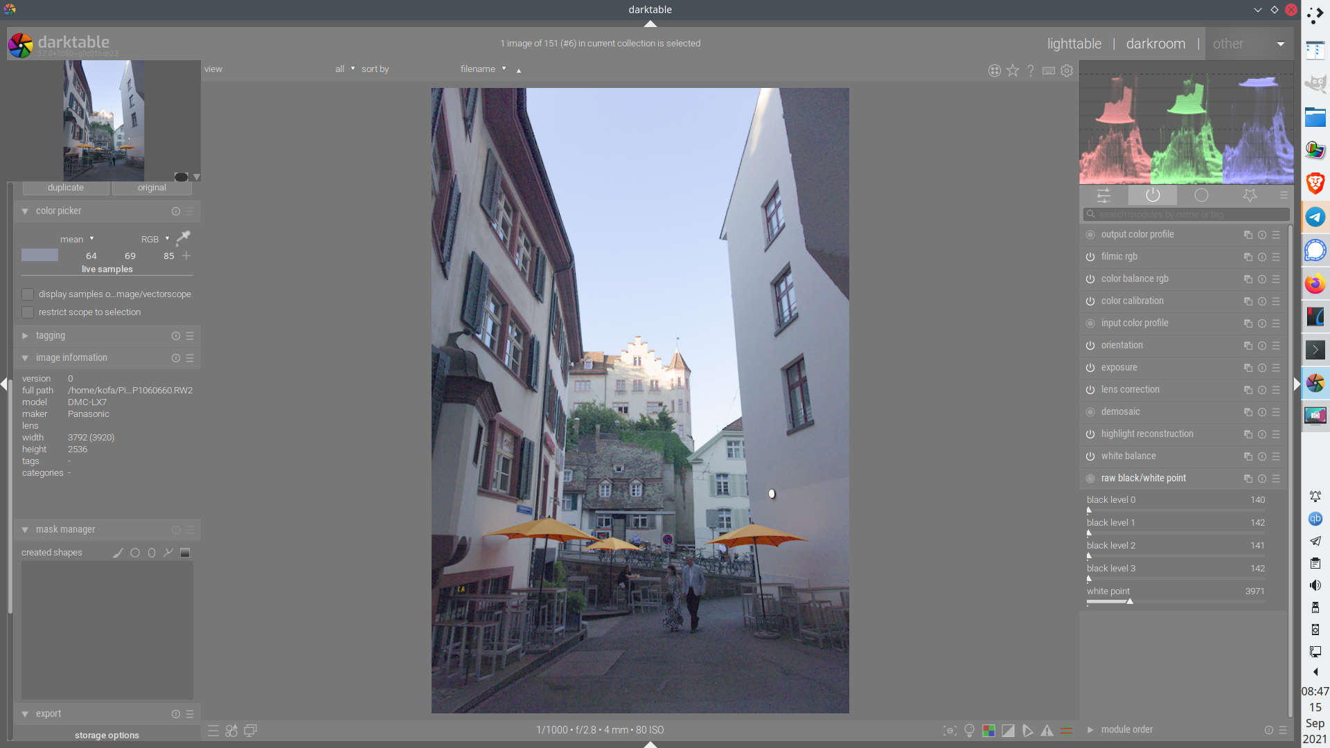 I noticed that the waveform showed different black levels for the channels. I checked in exiftool, and that indicated 128 for all channels, like used in darktable: