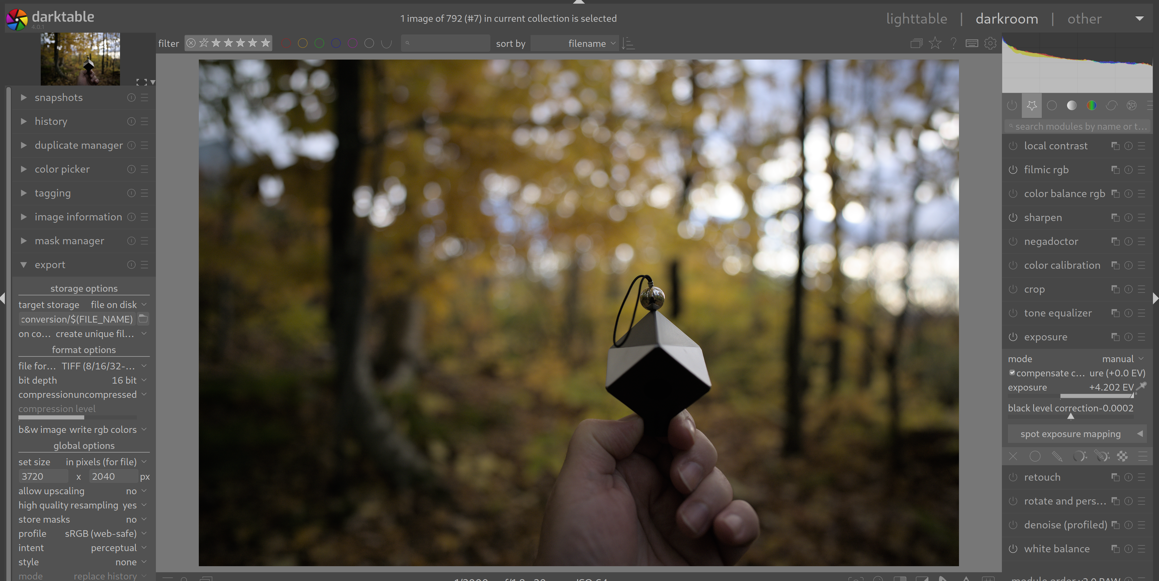 Hi guys, I just upgraded from 3.8.1 to 4.0.1 (Fedora KDE 37) and I cant extend the right/left panel more than a relatively small size. In 3.8.1, this was not so limiting. Any idea how I can resize the panels much more ? I tried to edit darktablerc and play with darkroom/ui/0/left_size (e.g. set to 800), but it appears it has no effect.