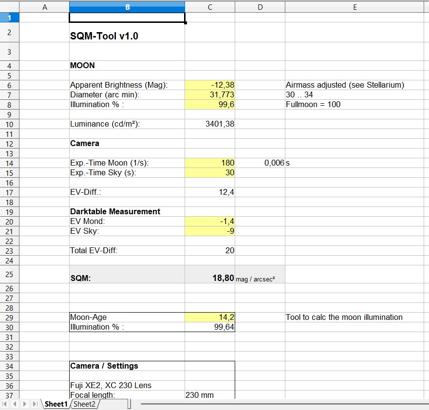 I’m figuring out a method to measure the sky quality (SQM) at my location with my Fuji X-E2 and darktable.