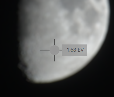My idea is to compare the luminance of a shoot of the full moon with a photo of the sky in the zenit. Moon is taken with 1/60 sec and the sky with 30 sec. Other settings are the same of course (230mm, f6.7, 200 ISO).