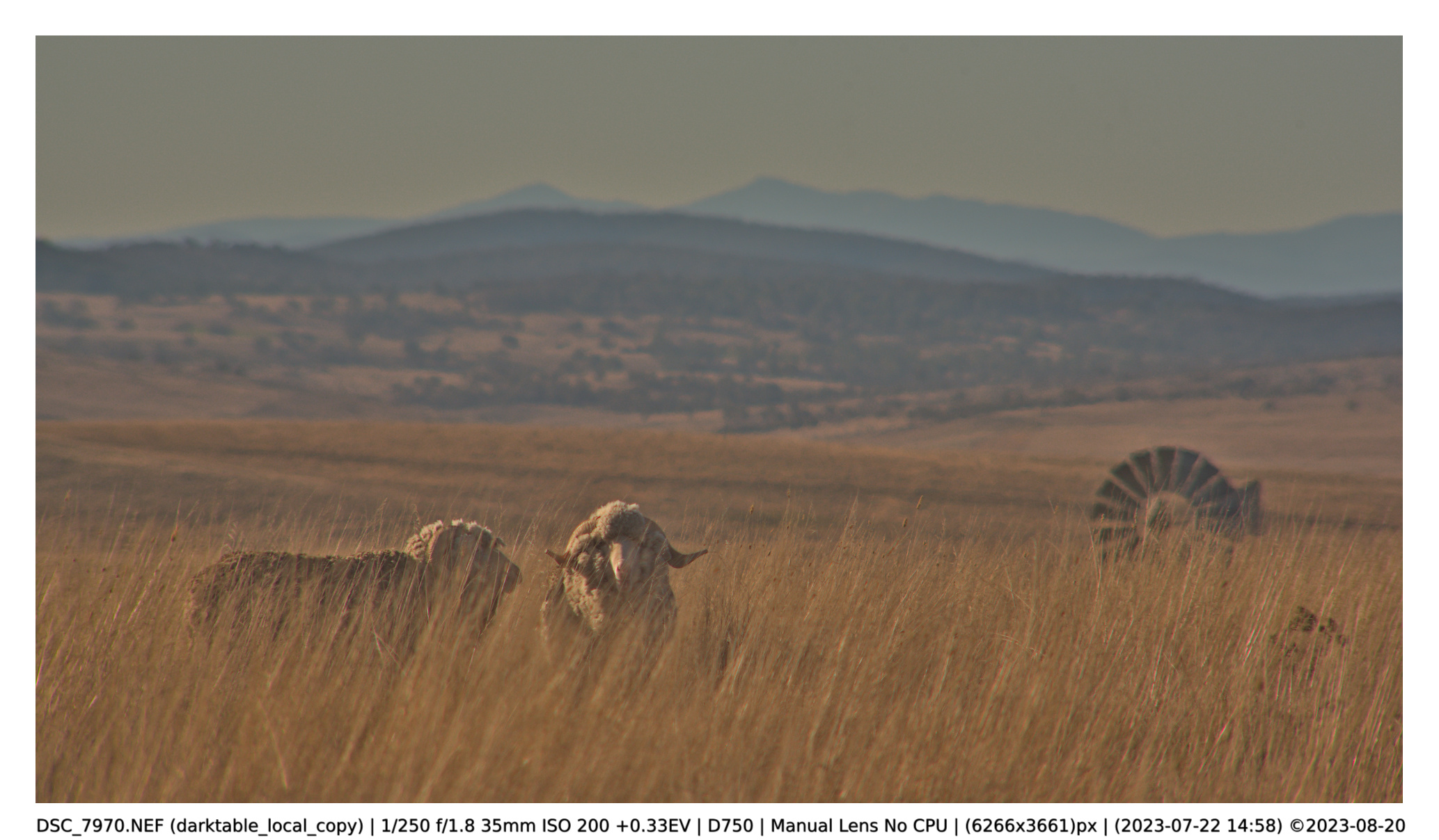 Added a little local contrast to the sheep only via a brush and gradient mask. Also used the same type of masks to very subtly 1) desaturate the sheep and 2) boost contrast, so they appear slightly whiter / contrastive to stand out just a touch.