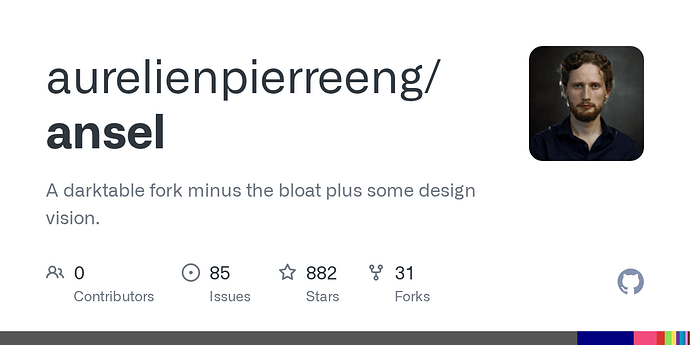 That’s what I thought too. It seems that the fork is now mostly worked by another guy. To me this effort is doomed anyway when you see what as been done to the code, it is actually fully broken! Not counting the fact that there is lot feature that are implemented in Darktable since the fork like Sigmoid, AgX, Color Equalizer, Primaries, Composite, Enlarge Canvas, dynamic snapshots regarding zoom, side-by-side snapshot view, Capture Sharpen, External Raster File to name only the major new features not counting the huge amount of fixes and UI adjustments.