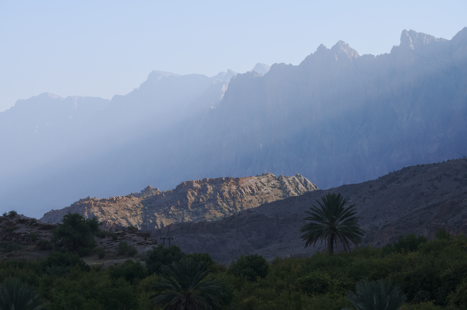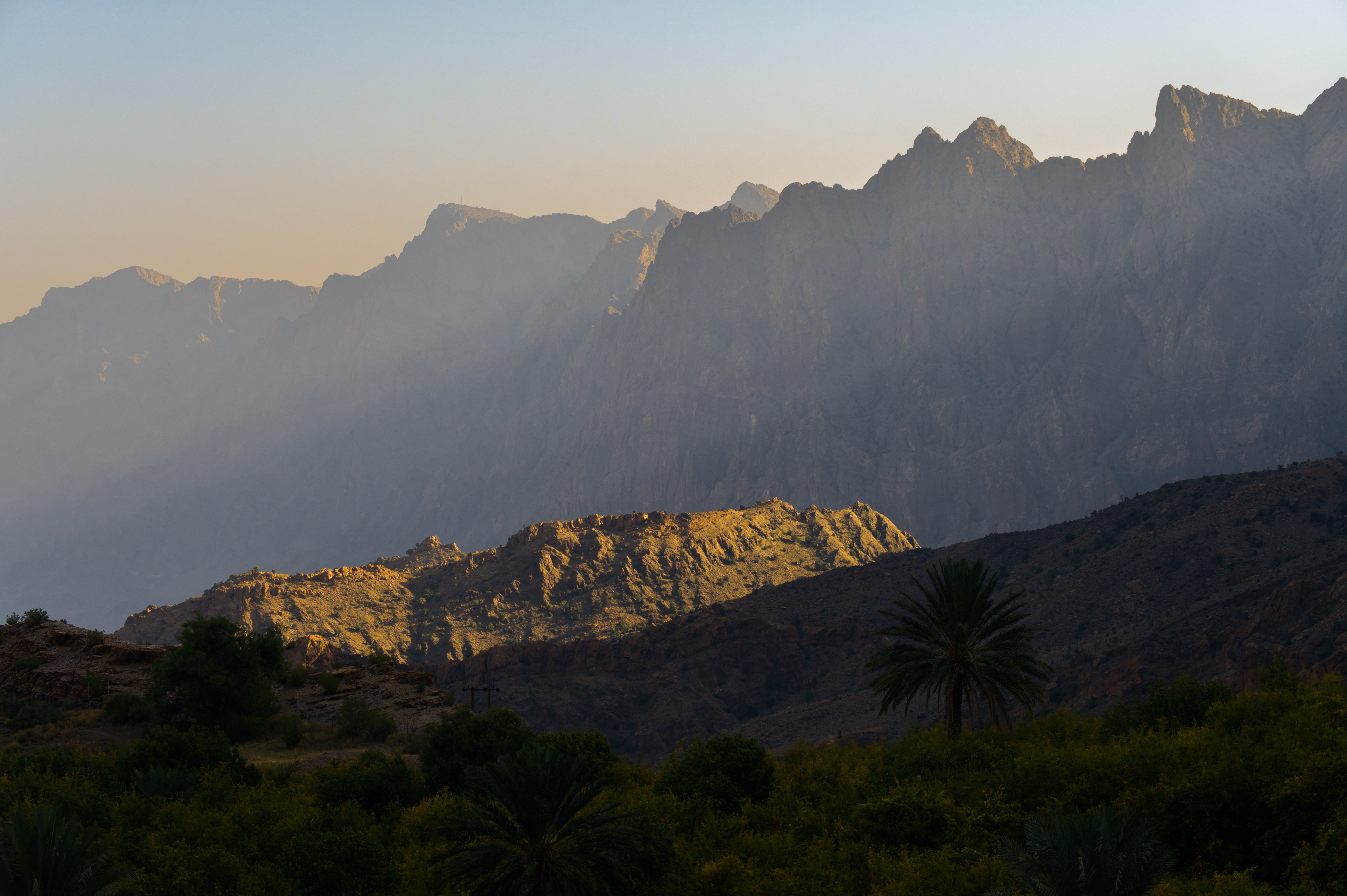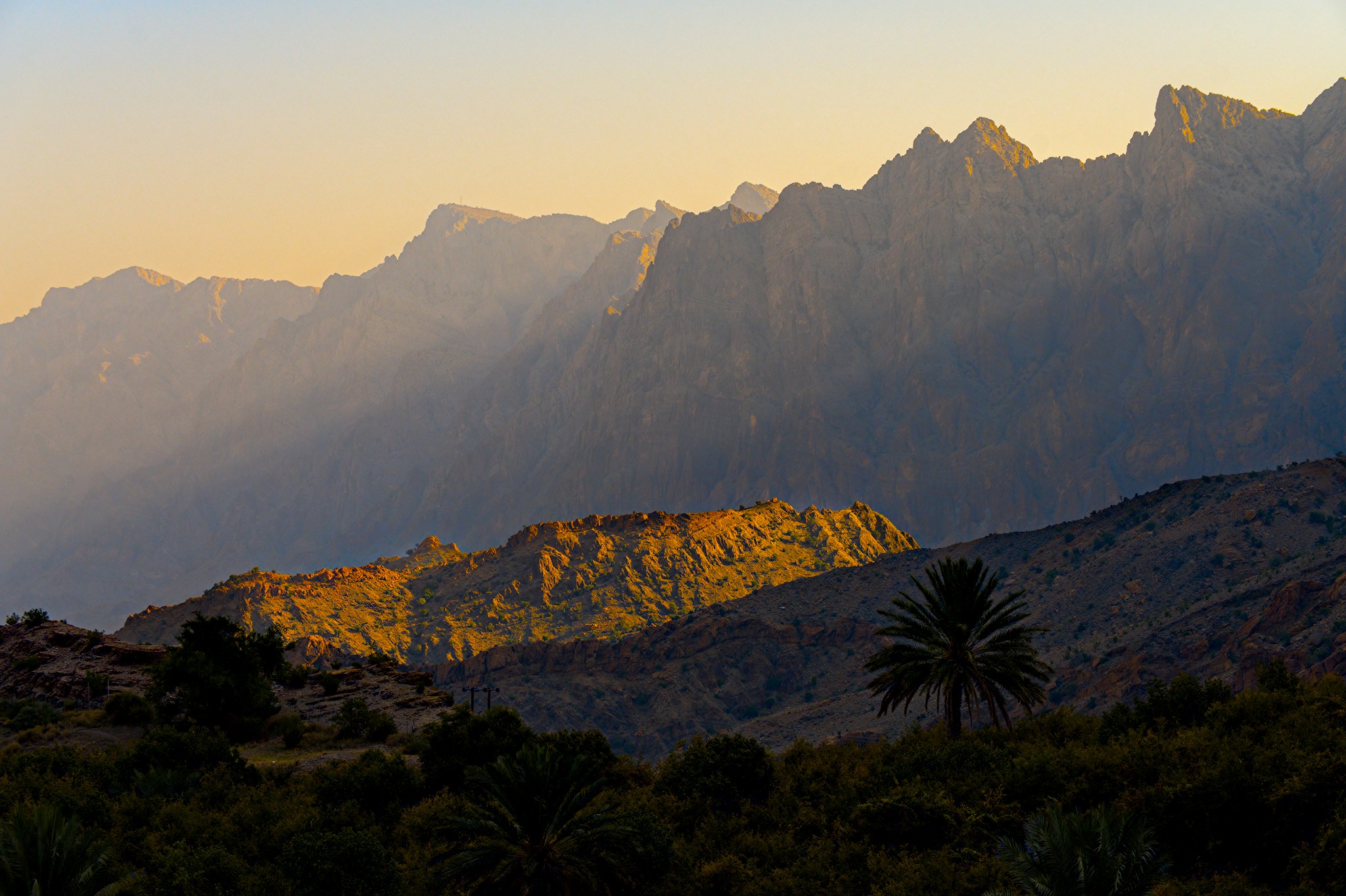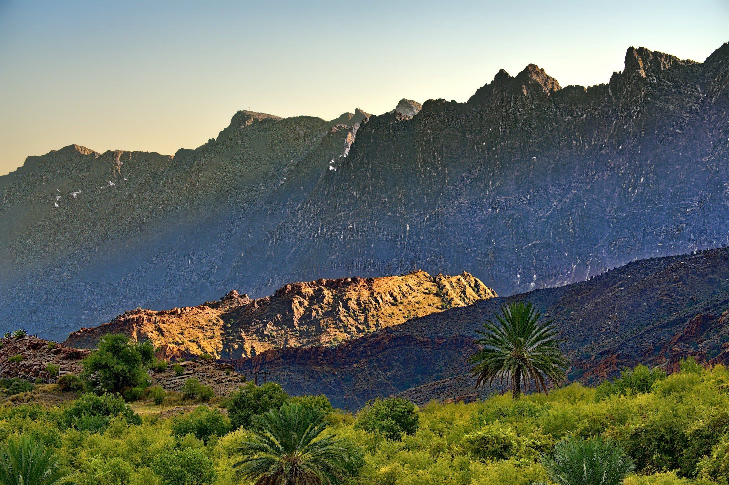 Very nice. I often see this transition in the sky, from blue to yellowish, but most of the time I fail to preserve it when I process the image. Also, nice work preserving the shadows cast by the mountains.