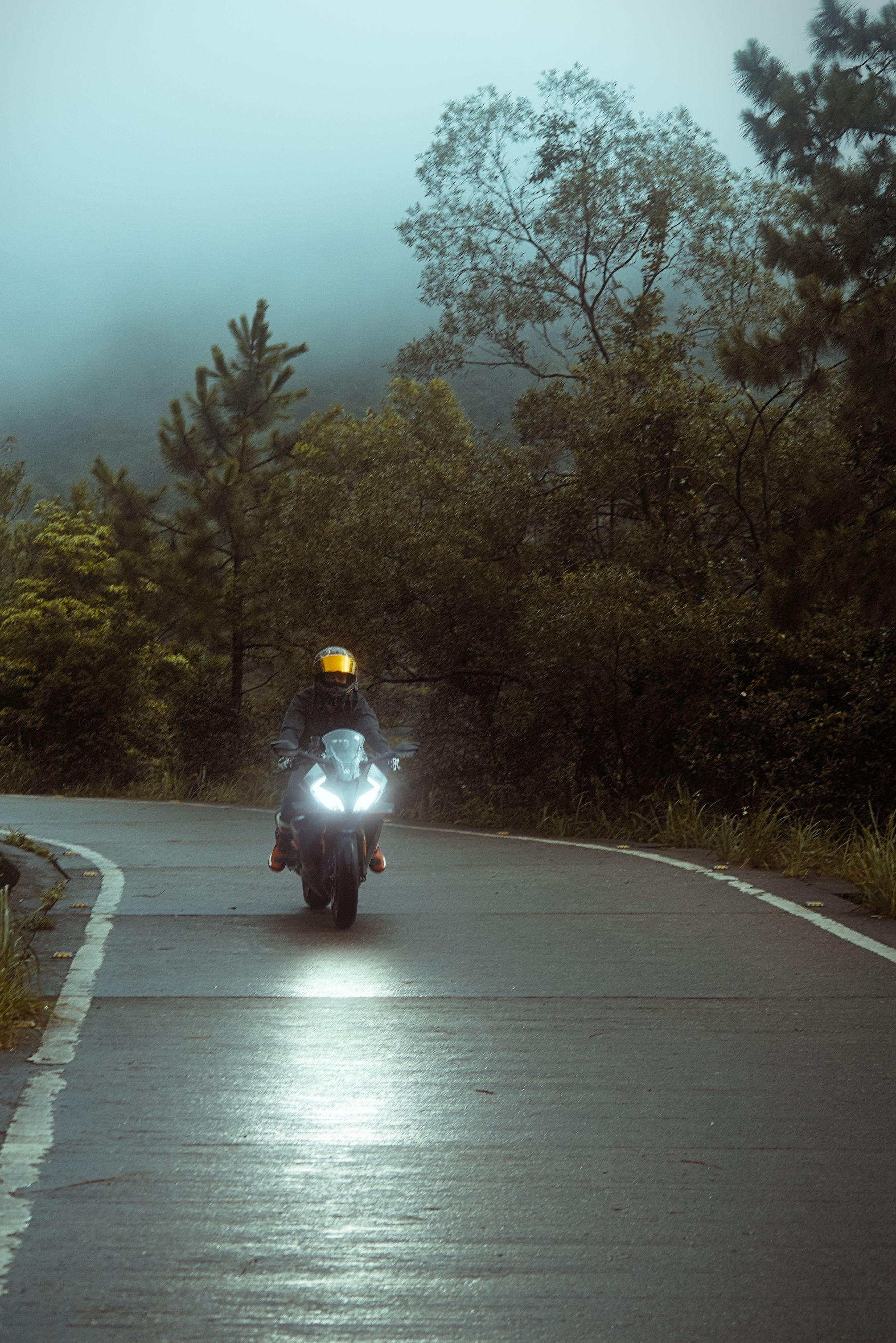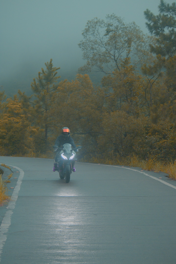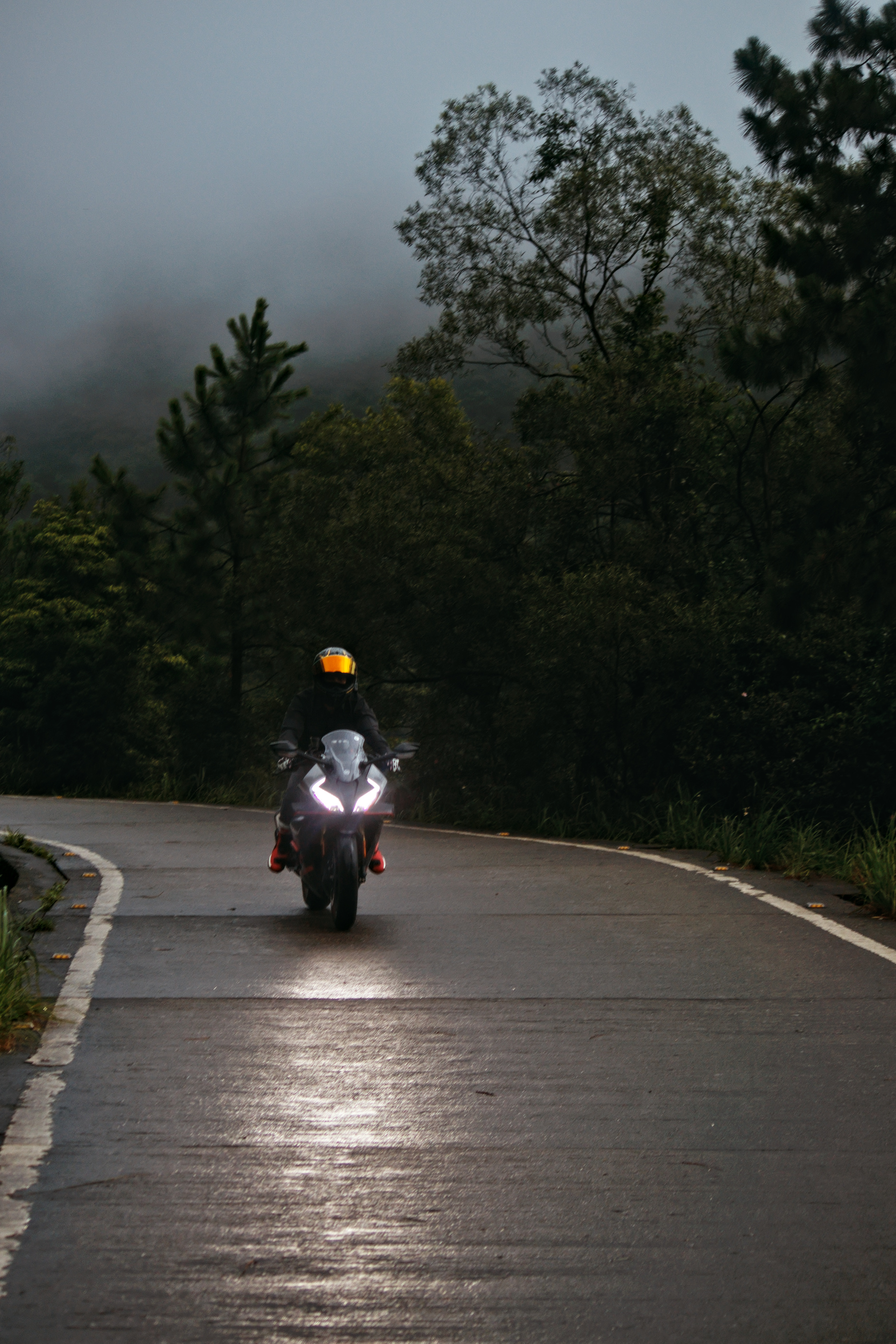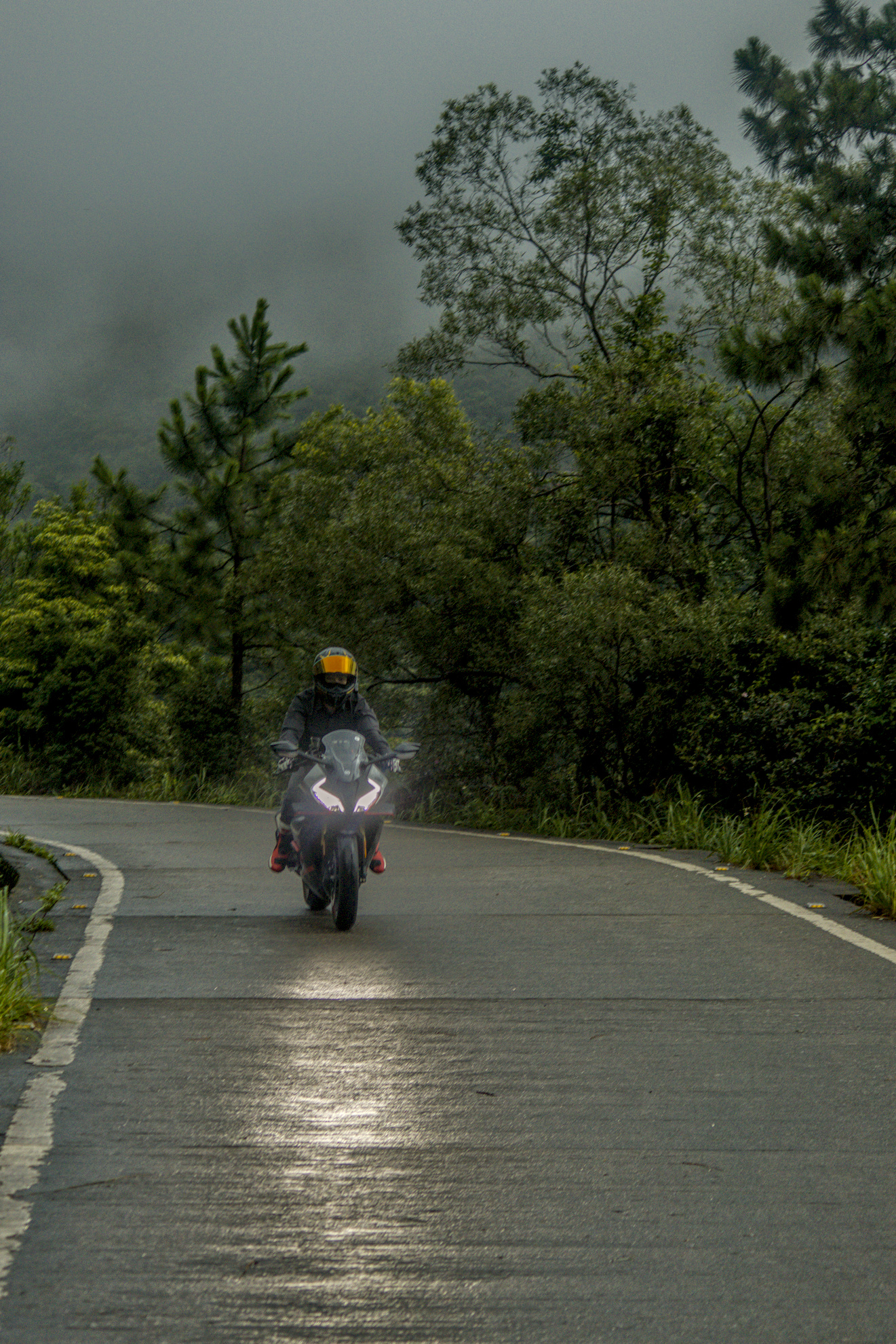 Accentuated the reflection of the headlight on the road and darkened the road surface. Increased saturation on the visor and the boots.