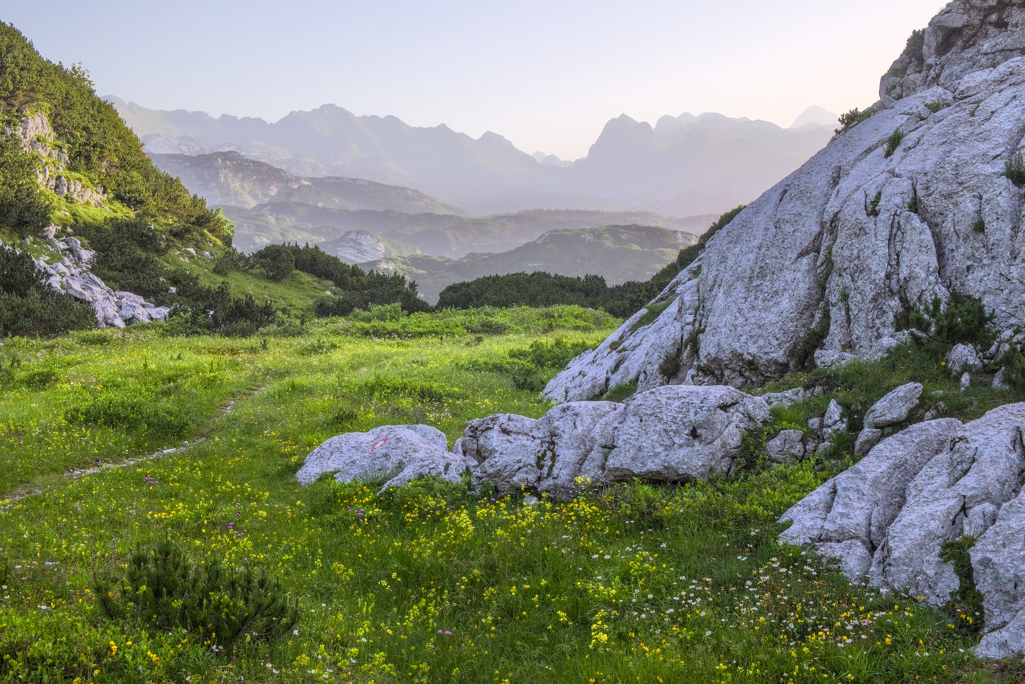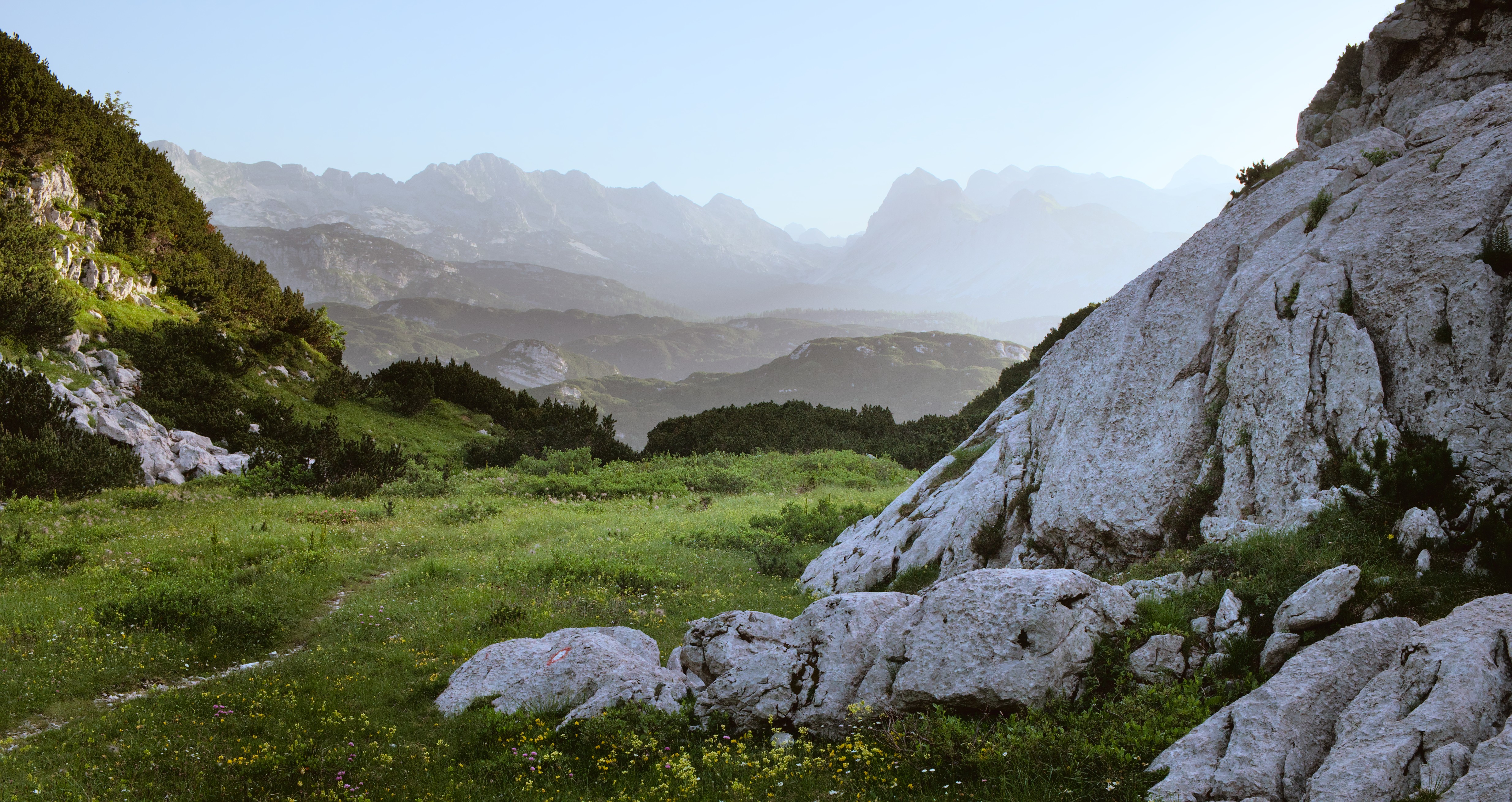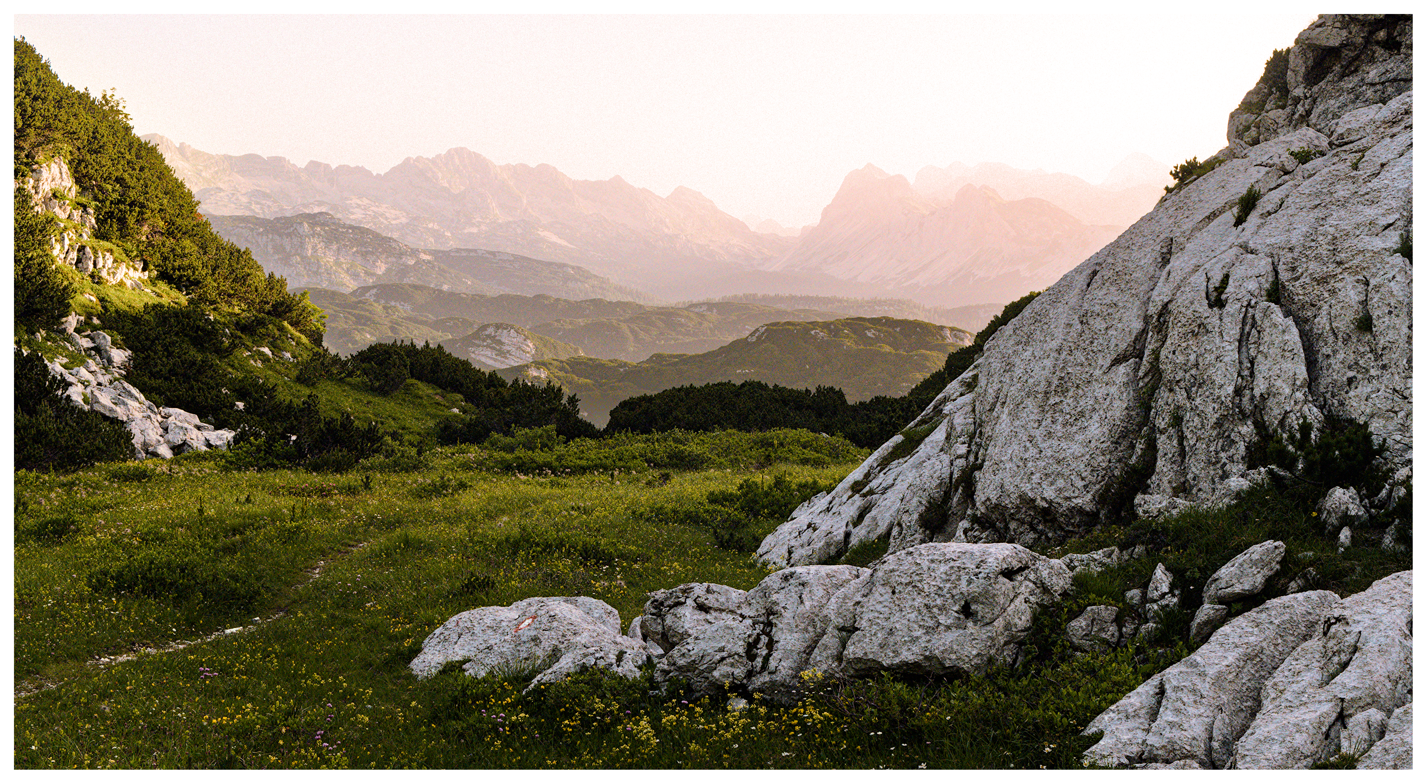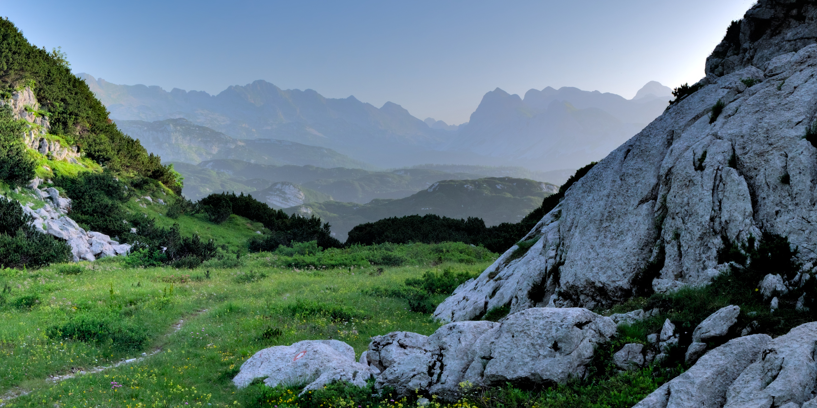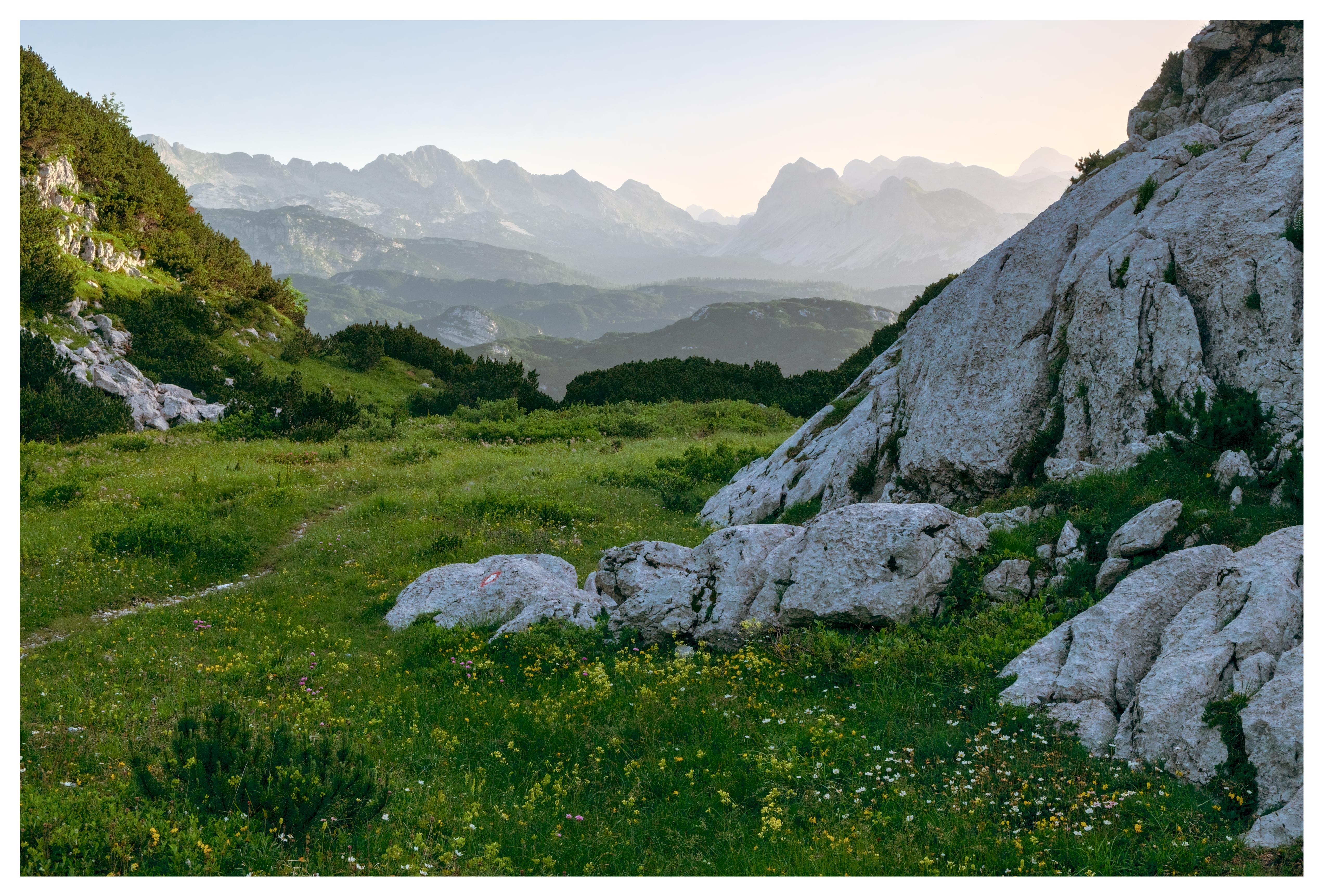 Hi. It’s a nice image, it has the classical graduated fading colour density which really shows distance. Just a small crop gives it drama (I think). I do favour landscapes in a wide format, it also removes some foreground which is distracting. It also leads your eye into the picture by placing the path in the corner.