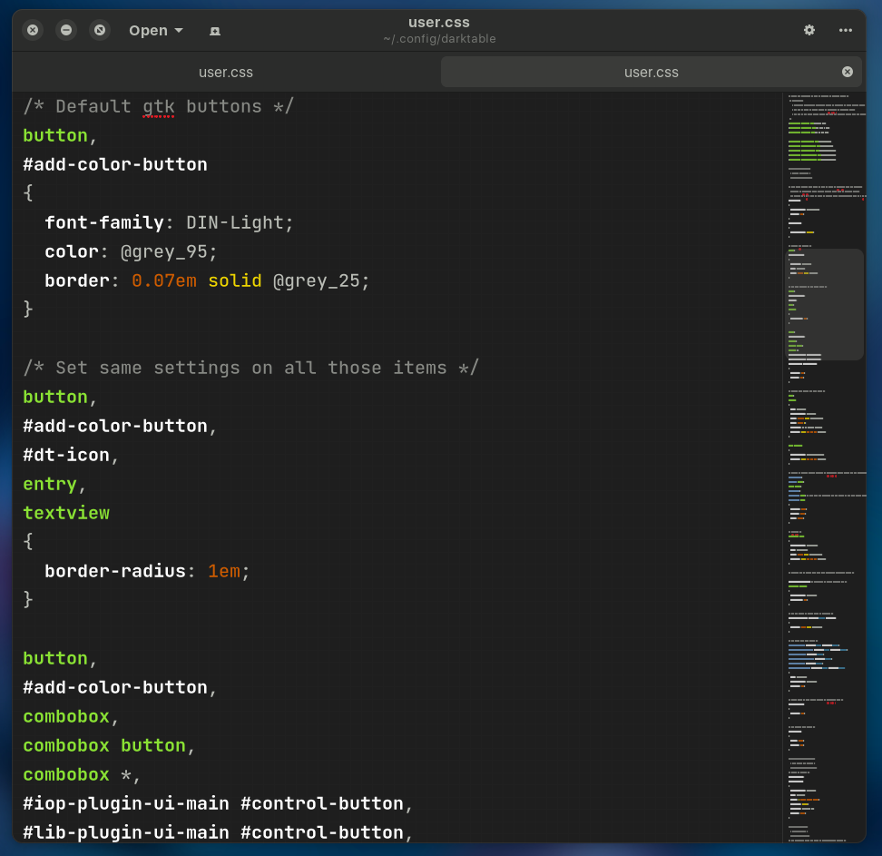 Darktable’s gui is made with gtk(3 I think) so unless there’s a gtk debugger/inspector I doubt that would be possible. I was surprised to learn that other frameworks besides web were also using css for their styling.