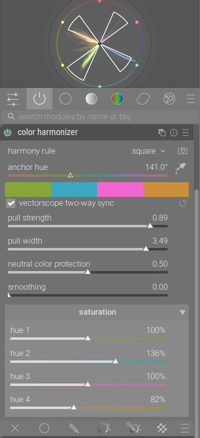 It works best when the image has an inherent harmony (auto-detect can find that for you), so you can use the module to make that harmony more obvious.