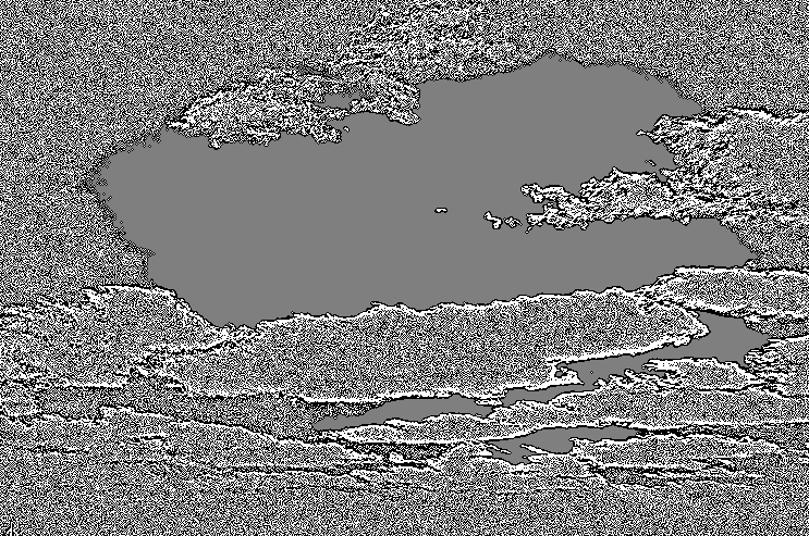 A second issue is that the cutoff itself is an estimate. If you treat the clip as a region with no gradients (i.e. flat), then quite often the cutoff will not match that. For example below is the gradient view of one channel of this image, which doesn’t quite match that obtained from a cutoff alone (clipped regions are solid fill):