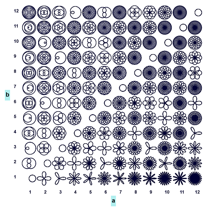 {min(4096,$b*360)},1,1,2,"t = lerp(0,2*pi*$b,x/w); r = cos($a/$b*t); [ r*cos(t),r*sin(t) ]"