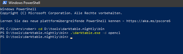 I think this depends on the console / terminal used. The method I described opens the Powershell, where only darktable won’t work. With the legacy console, you need to do without ./.