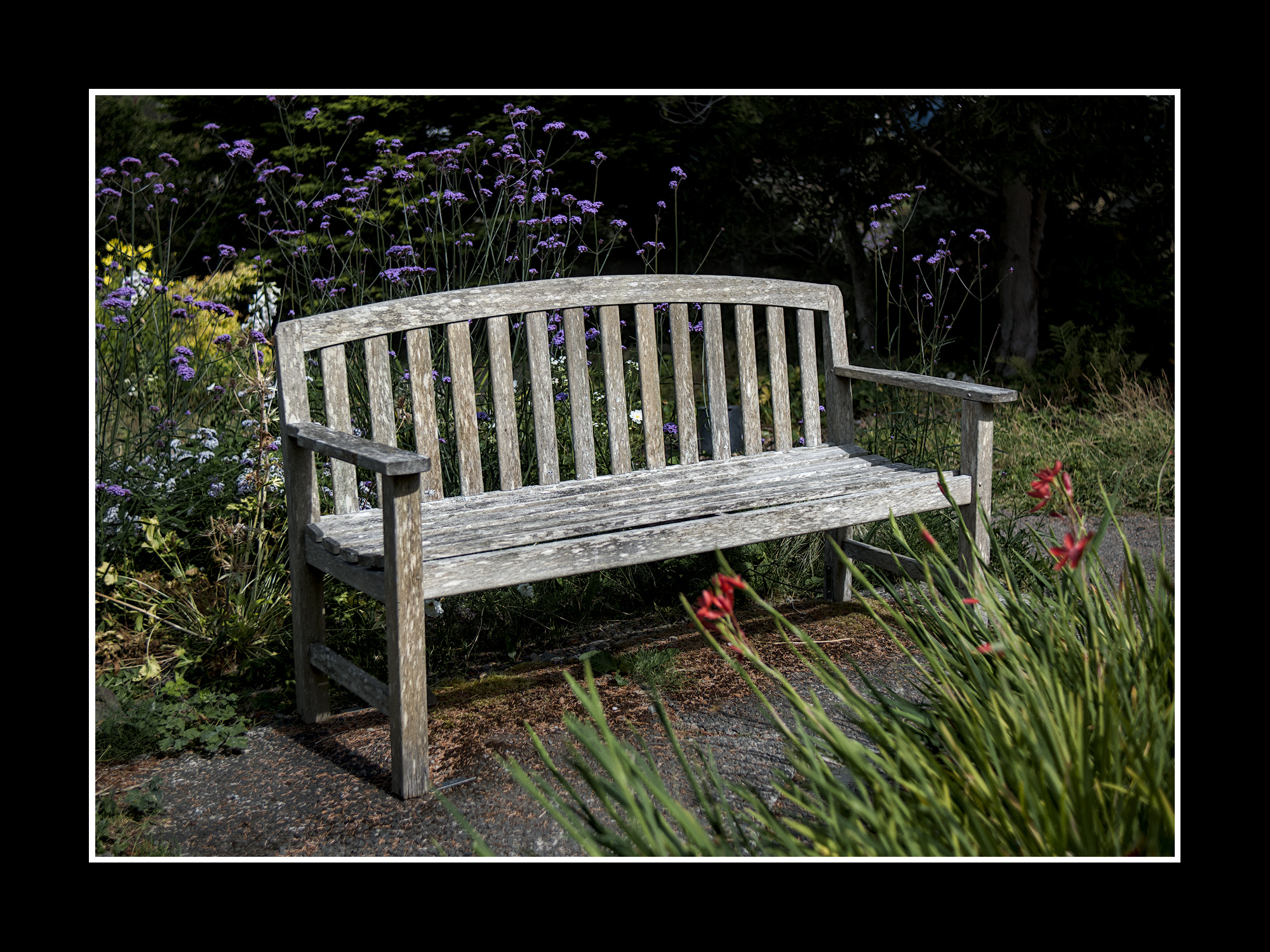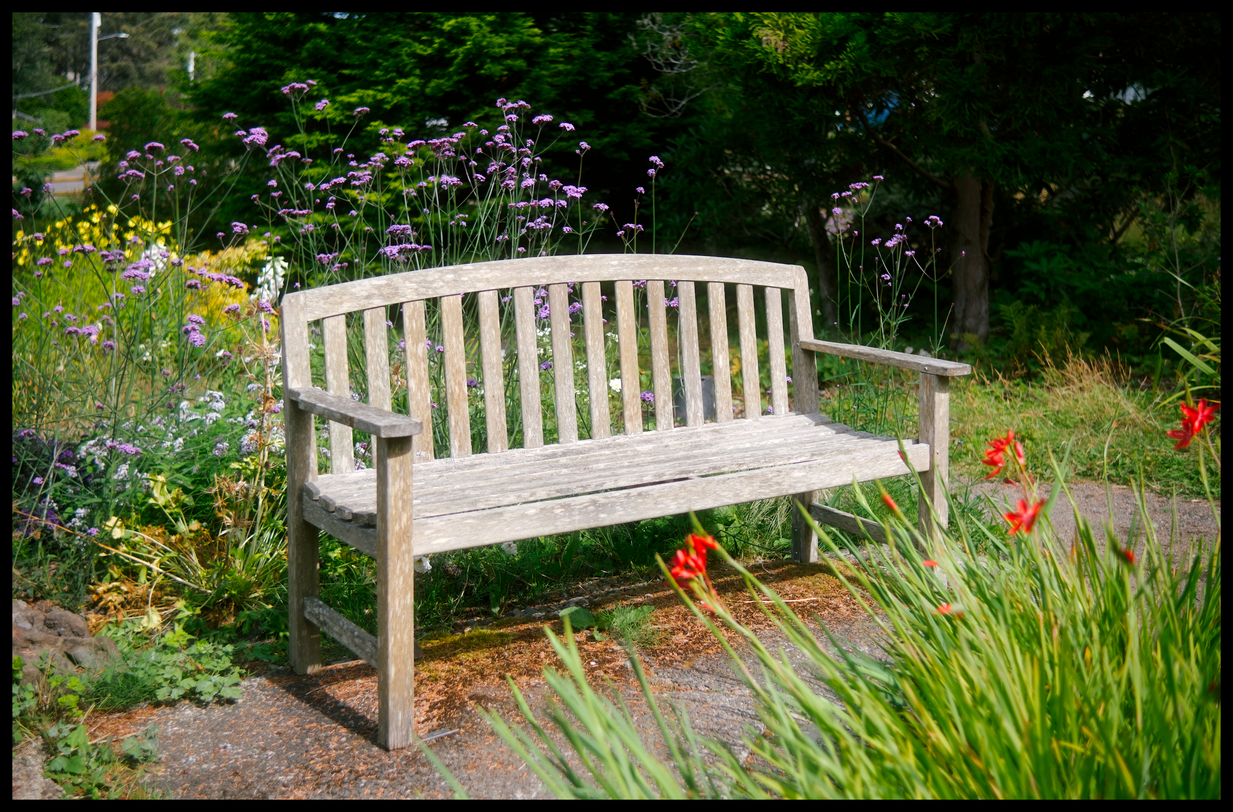 An empty bench in a garden taken last summer on the Oregon Coast. I would love to come back here and do some portraits. I edited this in RawTherapee, using a Film Simulation, but you’re welcome to use whatever.