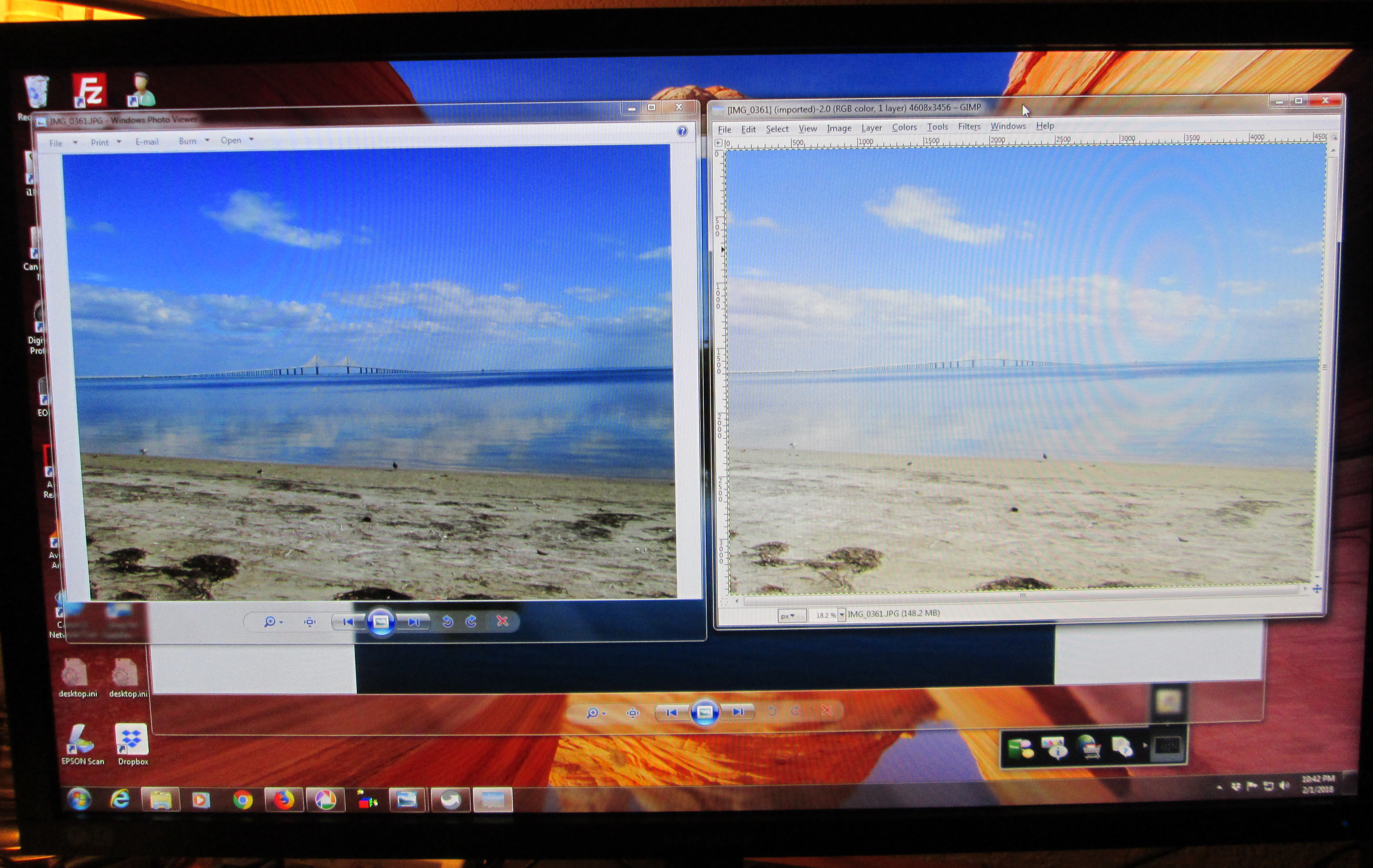Also, it might be going off topic a bit but I previously noticed something that I thought to be very strange and could possibly be explained by what has been presented herein. I posted a question on Microsoft’s Technet Forums seeking an explanation but unsurprisingly there was none. Windows includes a program referred to as Windows Photo Viewer (WPV). When I open a photograph using WPV what gets displayed appears dramatically different than what is displayed by many other viewers that I use. The image below is a photograph of my monitor when it is displaying the exact same JPG file in 2 different programs.