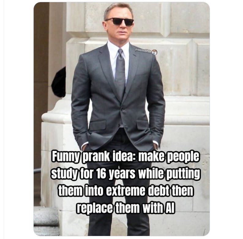 Those workers who, because of pride in their work and being team players (not a ‘bad’ thing!), are utilizing and making the best of the AI mandates contribute to the loss of positions for juniors. Which has further consequences. Most of which wont really be fully felt for another decade.